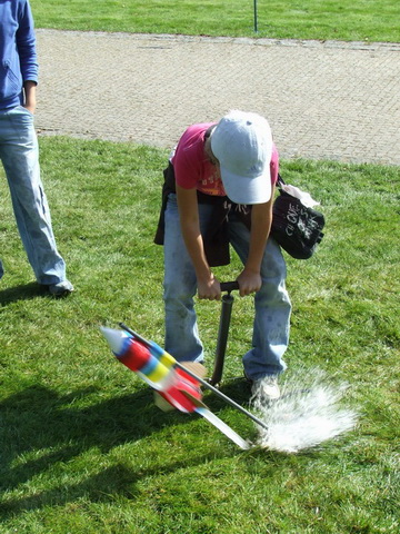 Kam doletí raketa ze dvou PETek, korkového špuntu, vody a pumpičky? Překvapivě daleko, rekord z roku 2007 je 75 m. Na prvním ročníku Vědy a techniky v ulicích byla vodní raketa vypouštěna v rámci astronomicko-fyzikálních pokusů. Od dalšího ročníku mají návštěvníci možnost ve stánku Západočeské pobočky ČAS raketu sami vyrobit a na přilehlém trávníku pumpováním vypustit.