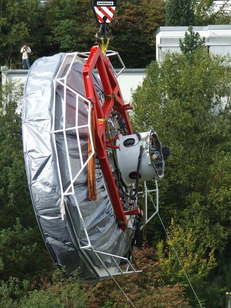 | 9) nový sekundární člen obřího radioteleskopu | 10) krásný pohled na sekundární „zrcadlo“ | |