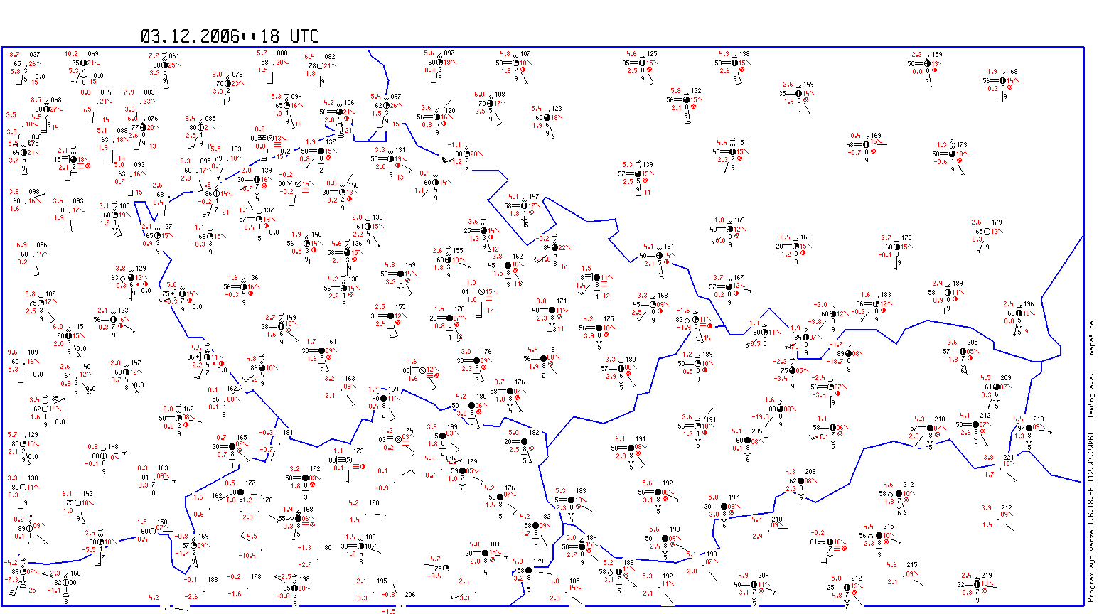 Kromě samotné prohlídky jsme se dozvěděli spoustu zajímavých informací o dané problematice, ale nejzajímavější informací byl odkaz http://www.chmi.cz/meteo/olm/produkty/pom/cr.htm. Po jeho spuštění se vám zobrazí stránka, která na první pohled působí velice chaoticky, ale ve skutečnosti se jedná o velice zajímavá a obsáhlá data, která se aktualizují každou hodinu. V jednotlivých symbolech naleznete meteorologické údaje o teplotě, rychlosti a směru větru, typu a výšce oblačnosti, tlaku a rosném bodu a dalších údajích.
