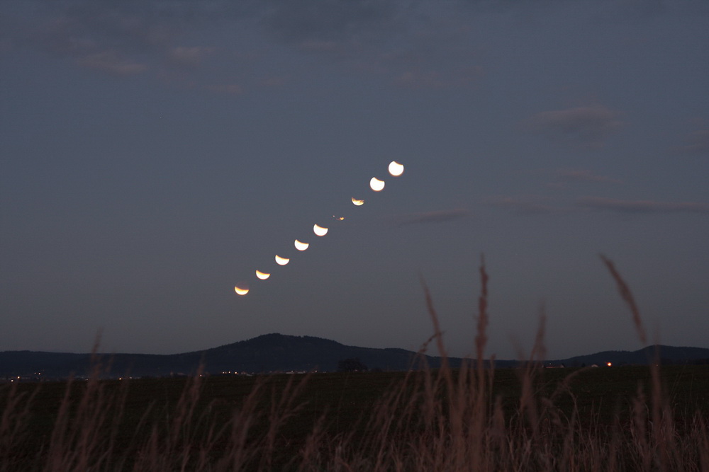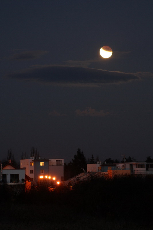 Ve včerejších podvečerních hodinách jsme měli možnost shlédnout zatmění Měsíce. Jednalo se již o druhé zatmění, které jsme úspěšně napozorovali během tohoto roku. Pokud bychom měli srovnávat oba úkazy, tak včerejší zatmění Měsíce bylo alespoň pro mne mnohem zajímavější. Měsíc totiž vycházel nad východním obzorem ve tvaru úzkého srpku jen pár minut po úplné fázi zatmění. O tom, jak jsme tento nevšední přírodní úkaz pozorovali, vypovídají přiložené fotografie.