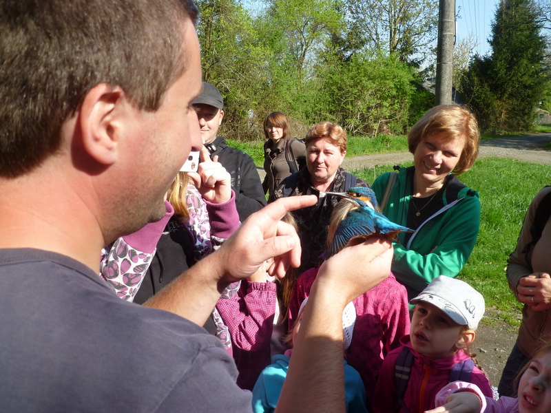 V sobotu 26. 4. 2014 jsme měli opět možnost se zúčastnit akce pojmenované Vítání ptačího zpěvu, kterou si připravil Nepomucký ornitologický spolek (NOS) pod vedením Václava Kováře. Akce se uskutečnila ve Spáleném Poříčí, kde jsme se sešli v 8 hodin před místním zámkem, který byl zvolen jako výchozí bod naší cesty. Odtud jsme mohli vidět na komíně zahnízděného čápa bílého, ale marně jsme vyhlíželi rorýse, kteří sice letos již také dorazili, ale v tuto ranní hodinu nebyli ještě vidět. Po úvodním slově našeho průvodce v zámeckém parku pokračovala naše cesta malebnou krajinou kolem potoka Bradava až k hrázi rybníku Hvížďalka. V průběhu procházky jsme se učili rozpoznávat jednotlivé druhy našich opeřenců, které jsme vábili na jejich hlasy pouštěné z připravených nahrávek, a proto jsme některé druhy mohli pozorovat z bezprostřední blízkosti. Pro odchyt ptáků byly nainstalovány pod hrází rybníka dvě sítě, kam se postupně podařilo chytit např. nádherné ledňáčky říční, ale také pěnici černohlavou, konipase, kosa, skorce vodního a další druhy, které byly okroužkovány a následně vypuštěny zpět do přírody. Akce se velmi povedla, nejenom díky velkému množství okroužkovaných ptáků, ale i samotnou účastí a po dlouhé době i krásným počasím. Z přiložených fotografií si pak můžete udělat obrázek o celém průběhu akce.