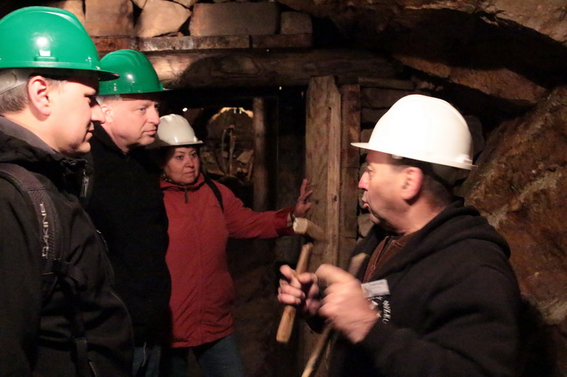 Letošní geologicko-paleontologická exkurze se uskutečnila v sobotu 17. 5. 2014 a jako místo našeho putování si členové pobočky vybrali Hornické muzeum Příbram, které bezesporu patří k jednomu z největších hornických muzeí v České republice. Muzeum je natolik rozsáhlé, že ho prakticky není možné v průběhu jednoho dne projít, což byl i náš případ. Naši prohlídku jsme tedy soustředili na Hornický skanzen Březové Hory, kde jsme během dne shlédli tři návštěvnické okruhy - Ševčinský důl, Důl Anna a Důl Vojtěch viz přiložené fotografie. Jednotlivé návštěvnické okruhy seznamují návštěvníka s bohatou minulostí spojenou nejenom s těžbou stříbra a dalších rud, ale díky zachovalým hornickým exponátům si můžete udělat představu o tom, jak těžká a náročná byla práce horníka. Vyzkoušeli jsme si i jízdu hornickým vláčkem a to nejenom na povrchu, ale i v podzemí, kde jsme navštívili hned několik zpřístupněných štol.