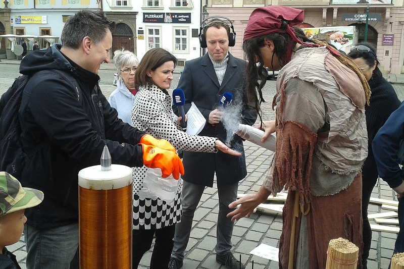Po více než padesáti letech to bylo poprvé, kdy pořad Meteor vysílal živě mimo pražské studio. A byla to právě Plzeň, kam zavítal celý realizační tým včetně autora pořadu Petra Sobotky. Celý pořad se vysílal od 8h v improvizovaném proskleném studiu Českého rozhlasu na Náměstí Republiky, kde příchozí návštěvníci mohli sledovat moderátory a jejich hosty při práci. Součástí živého vysílání byl i doprovodný program, který zajišťovala Západočeská pobočka České astronomické společnosti společně s Hvězdárnou a planetáriem Plzeň, Oddělením fyziky Pedagogické fakulty ZČU v Plzni a Gymnáziem Plzeň. K vidění, ale i k osahání či ochutnání, byla řada experimentů, pokusů nebo astronomických pozorování. Náš program se nesl v podobném duchu jako na Evropské noci vědců nebo Vědě v ulicích. Připravené jsme měli dva stany, kde se prováděly fyzikální pokusy a představila se i astronomická kuchyně. Mohli jste si tak sáhnout na 200 tisíc voltů, ochutnat kometu či si vyzkoušet pokusy s vakuem. Hned vedle stanů byla nainstalovaná zrcadla, která deformovala váš obraz. Před studiem byly připraveny dalekohledy pro návštěvníky, ve kterých mohli pozorovat Slunce a další pozemské objekty. Kromě toho zde byly připraveny i stolní hry nejenom pro ty nejmenší návštěvníky.