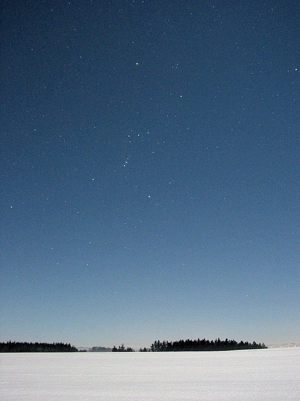 Souhvězdí Orion (Ori) je nejvýraznější zimní souhvězdí. Nejjasnější hvězda Rigel - β Ori (0. mag) tvoří s hvězdou Saiph - κ Ori (2.mag) Orionovi nohy. Oranžová hvězda Betelgeuse α Ori je pulzující červený veleobr (0,3 - 1,2 mag) a tvoří spolu s hvězdou Bellatrix - γ Ori (1,6 mag) Orionovy ramena. Hlavu tvoří hvězda Heka - λ Ori (3.4 mag) se dvěma slabšími hvězdami, a Orionův pás trojice hvězd kolem 2. mag - Alnitak - ζ Ori, Alnilam - ε Ori a Mintaka - δ Ori. Orionův luk tvoří hvězdy π Ori 3. - 5. mag a také Orionův meč (pod pásem) tvoří hvězdy 3. - 5. mag.