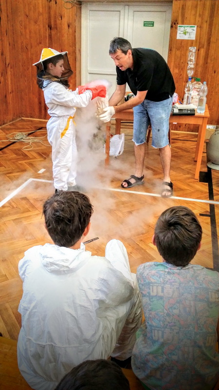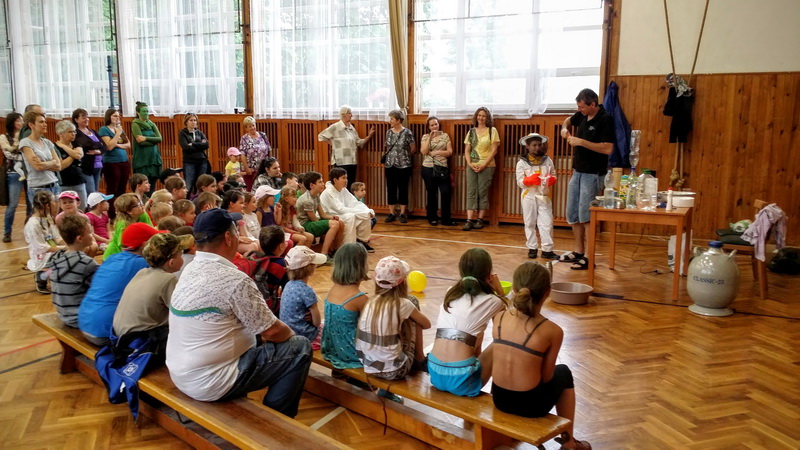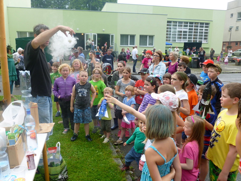 Nejenom astronomií se dokážeme bavit. Důkazem mohou být fotografie z dětského dne v Manětíně, který se uskutečnil 28. 5. v prostorách místního kulturního centra a to jen proto, že zhruba 5 min před začátkem se prohnala Manětínem silná bouřka, která zapříčinila, že většina připravených her se musela přestěhovat do vnitřních prostor. Program dětského dne byl zaměřený na vesmír, proto mezi malými účastníky nechyběli ani různí kosmonauti, roboti, či ufoni . Na závěr dětského dne pak byla připravená zdravice od našeho zatím jediného kosmonauta Vladimíra Remka. Na programu dětského dne se podílela řada sponzorů a dobrovolníku, ale asi největší poděkování patří partě nadšenců kolem Vaška Koudeli a Šárky Halové.