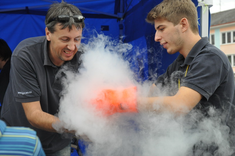 | Fyzika nejsou jen dlouhé tajemně vypadající vzorce, ale může být i zábavná! Zhlédnete pokusy s nízkými teplotami a kapalným dusíkem, vysokým napětím a transformátory. Fyzika je všude kolem nás, pojďme ji zkoumat společně! Do tajů fyziky vás uvedou studenti a vysokoškolští pedagogové Fakulty pedagogické Západočeské univerzity v Plzni. Představu o jejich aktivitách si můžete udělat například z videa pro Českou televizi v rámci projektu Dny vědy a techniky, které pořádá Západočeská univerzita ve spolupráci s městem Plzeň. Video zde. Nebo na webových stránkách projektu Dny vědy. | |