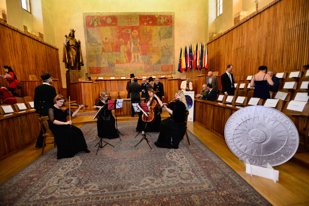 V aule Karolina, pak byly předány ceny a čestná uznání. ČAS také získal vlastní planetku pod číslem 100308. Slavnostního předání se zúčastnilo 8 dosud žijících předsedů ČAS vč. čestného předsedy Jiřího Grygara, stávajícího předsedy Petra Heinzla, nebo nejdéle sloužícího předsedy, na tento den obživlého, Františka Nušla.