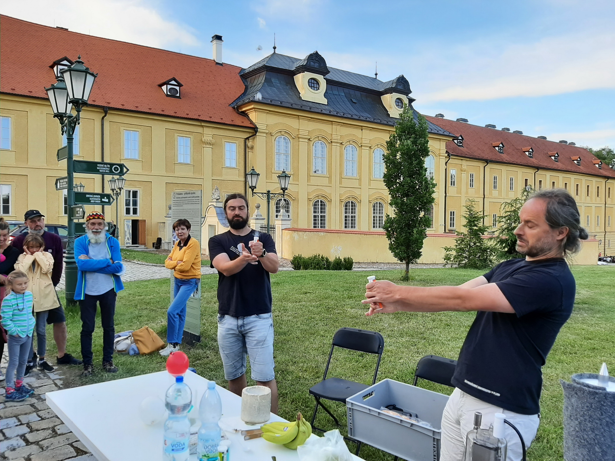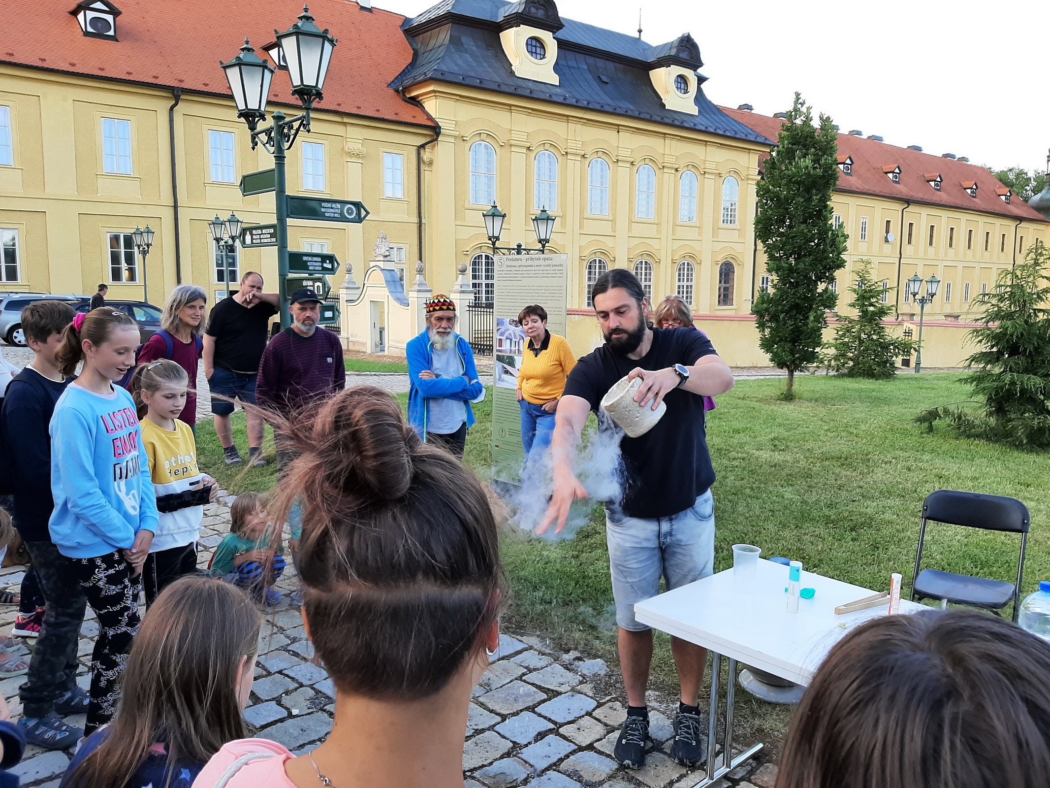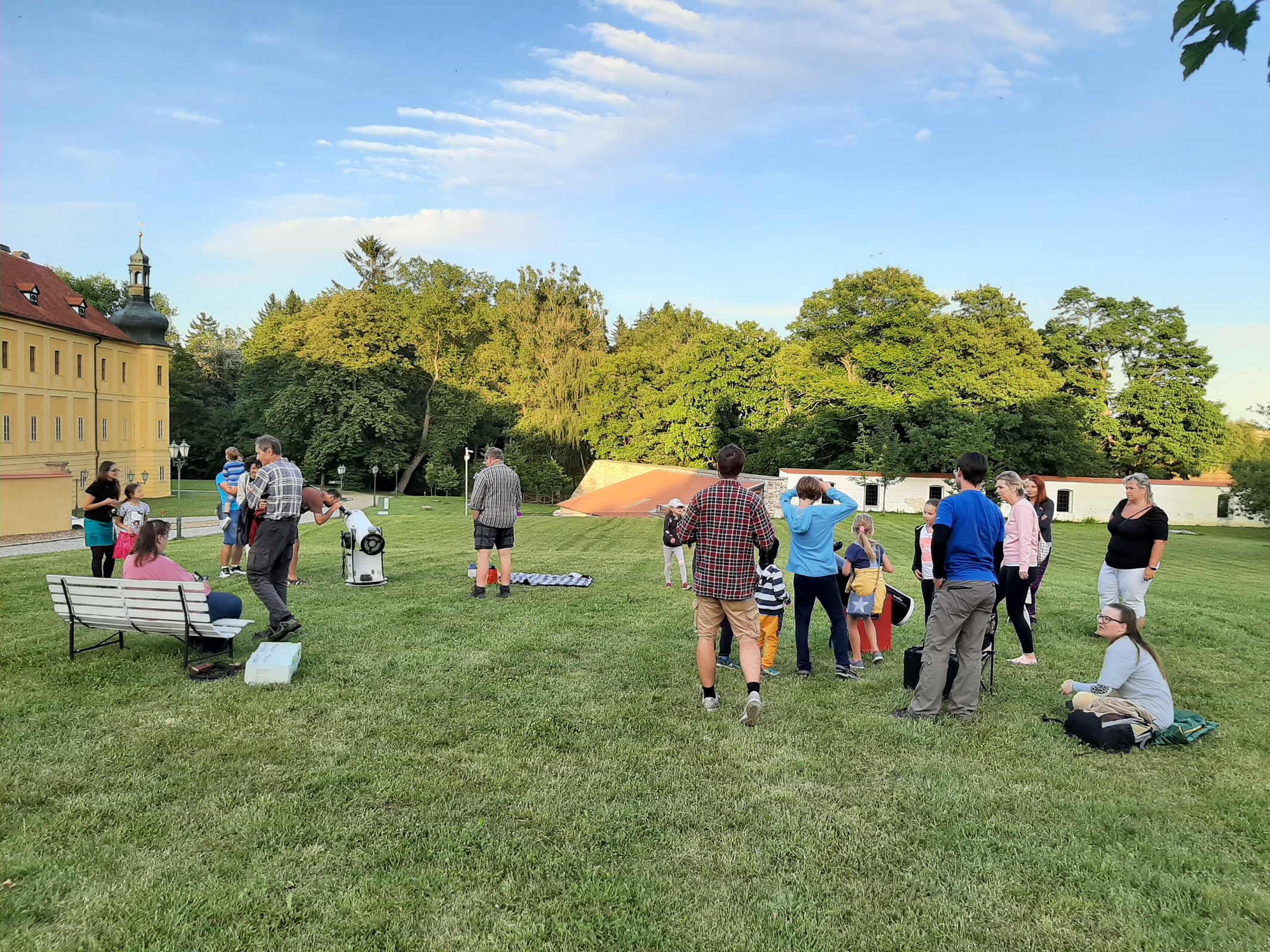 V sobotu 31. 7. 2021 jsme ve spolupráci s Hvězdárnou v Rokycanech a Plzni, Fakultou pedagogická Západočeské univerzity v Plzni a Hroznatovou akademií uspořádali v areálu kláštera Teplá u Mariánských lázní astronomické pozorování doplněné řadou fyzikálních pokusů. Po roce se do kláštera opět vrátila astronomie a fyzika, která zde vzkvétala po několik staletí. Dvě stovky návštěvníků si mohly vychutnat krásy vesmíru dovezenou astronomickou technikou a zábavnou formou se seznámit s řadu zajímavých fyzikálních pokusů, které si někteří vyzkoušeli i na vlastní kůži, jak dokreslují přiložené fotografie.