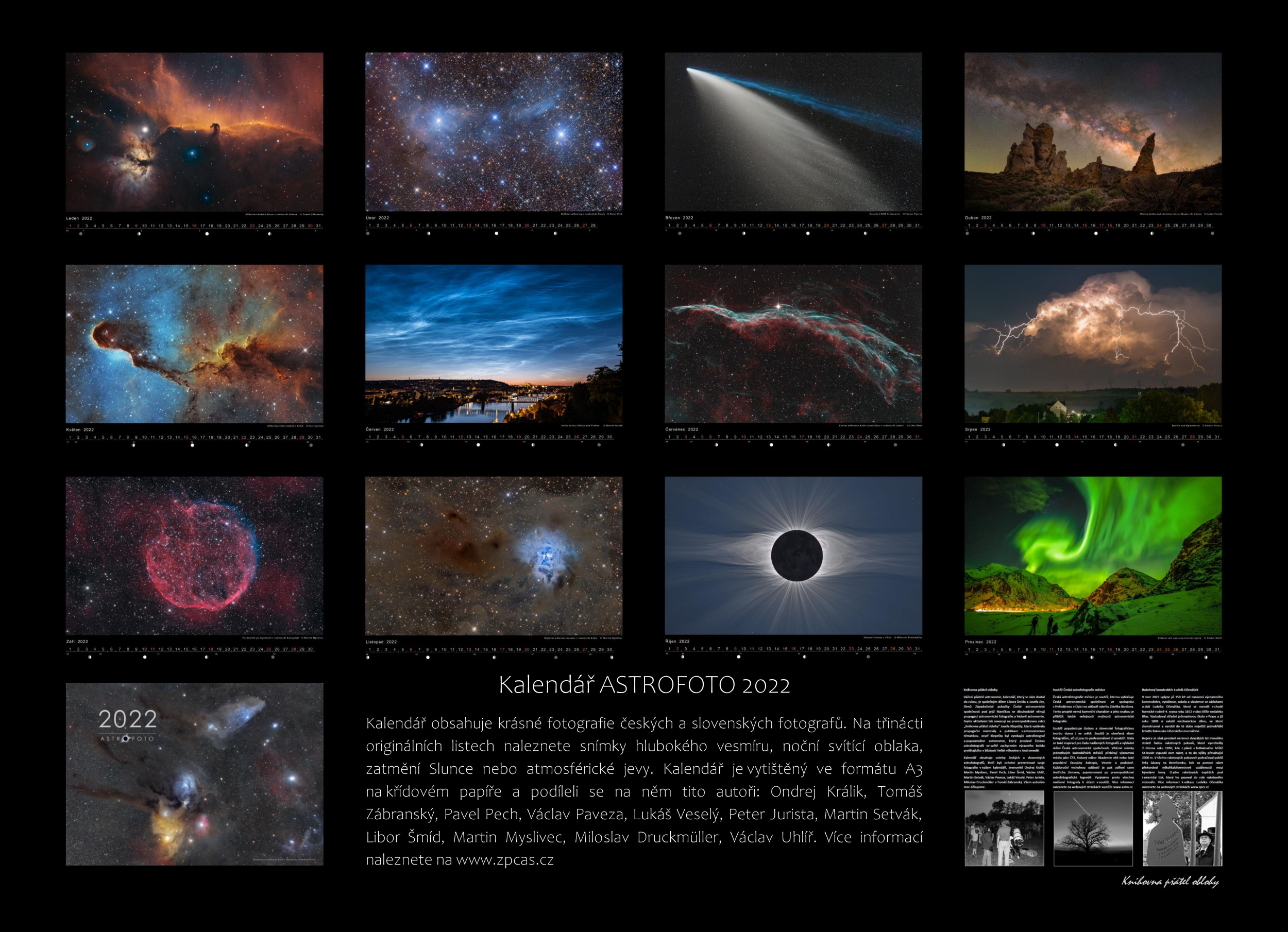 Nový astronomický kalendář ASTROFOTO 2022, který vám nabízíme, je společným dílem Libora Šmída a Josefa Jíry, členů Západočeské pobočky České astronomické společnosti, pod jejíž hlavičkou se autoři dlouhodobě věnují propagaci astronomické fotografie a historii astronomie. Svými aktivitami tak navazují na prvorepublikovou edici „Knihovna přátel oblohy“ Josefa Klepešty, která vydávala propagační materiály a publikace s astronomickou tématikou. Kalendář obsahuje snímky českých a slovenských astrofotografů, kteří byli ochotni prezentovat svoje fotografie v našem kalendáři, jmenovitě Ondrej Kralik,Tomáš Zábranský, Pavel Pech, Václav Paveza, Lukáš Veselý, Peter Jurista, Martin Setvák, Libor Šmíd, Martin Myslivec, Miloslav Druckmüller, Václav Uhlíř. Všem autorům moc děkujeme.