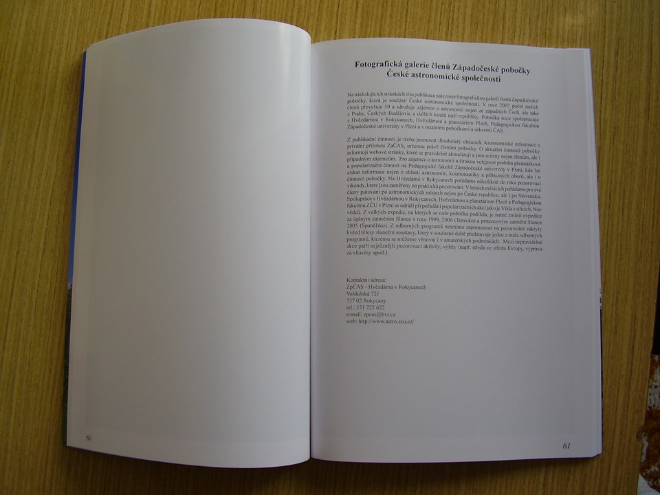 Závěrem se sluší poděkovat všem těm, kteří se na publikaci podíleli a nemalou měrou tak přispěli k prezentaci Západočeské pobočky České astronomické společnosti. Neboť připravit publikaci k tisku během dvou týdnů, není nic jednoduchého. Můj dík tedy patří jmenovitě ještě jednou Martinu Adamovskému, Jirkovi Polákovi, Ondřeji Trnkovi a Liborovi Šmídovi.