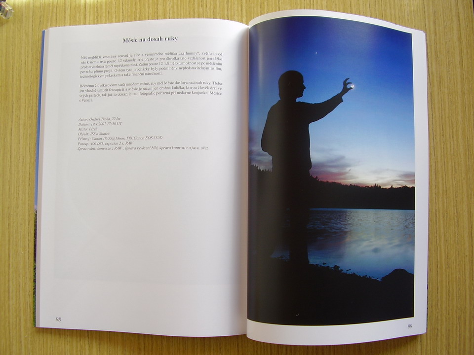 O čem je řeč? O publikaci, která nese jméno „Objektivem do vesmíru i kolem nás“ a obsahuje astronomické snímky českých amatérských fotografů sdružených kolem České astronomické společnosti. Publikace vznikla díky firmě XEROX, která Akademii věd nabídla vydání propagační publikace.