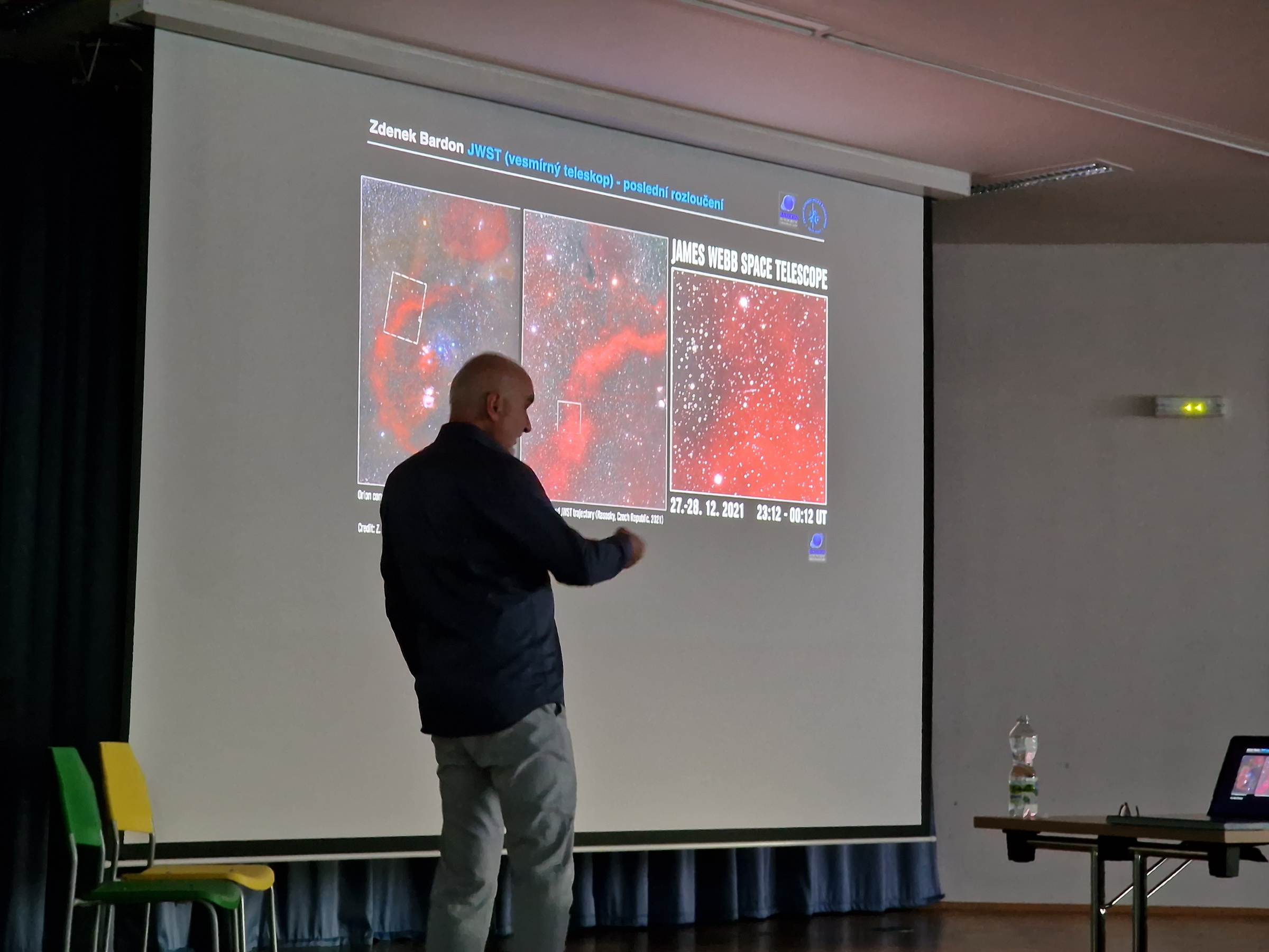 Mezi již tradičními přednášejícími nechyběl profesor Petr Kulhánek z Českého vysokého učení technického, jehož přednáška „Dalekohled Jamese Webba“ seznámila posluchače nejenom s technickým řešením samotné družice, ale i s prvními vědeckými výsledky tohoto vesmírného teleskopu. Na přednášku profesora Kulhánka pak navázal se svým příspěvkem o dobývání Měsíce Dušan Majer z Kosmonautixu, který svoji přednášku nazval „Návrat lidí na Měsíc pod křídly Artemis“. Zapomenout ale nemůžeme ani na další vynikající přednášející, jako byl profesor Pavel Cejnar s přednáškou „Klasický a kvantový chaos“ nebo profesor Jiří Podolský, který hovořil o „Nových testech Einsteinovy teorie relativity“. O závěr přednáškového dne se pak postaral charizmatický astrofotograf Zděněk Bardon, který seznámil posluchače s výsledky své mnoholeté fotografické činnosti.