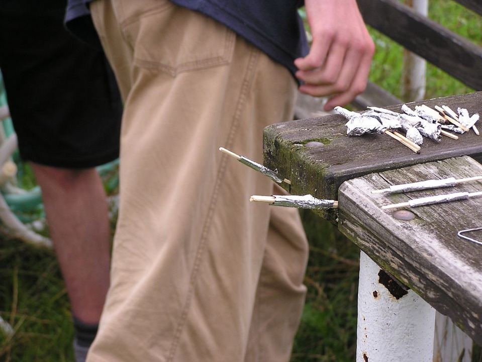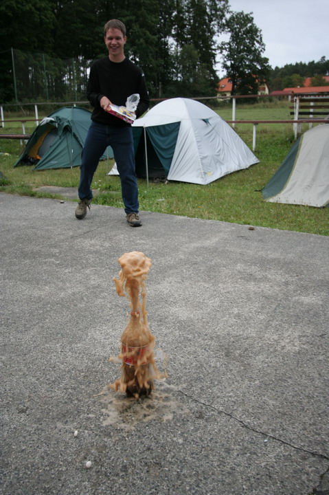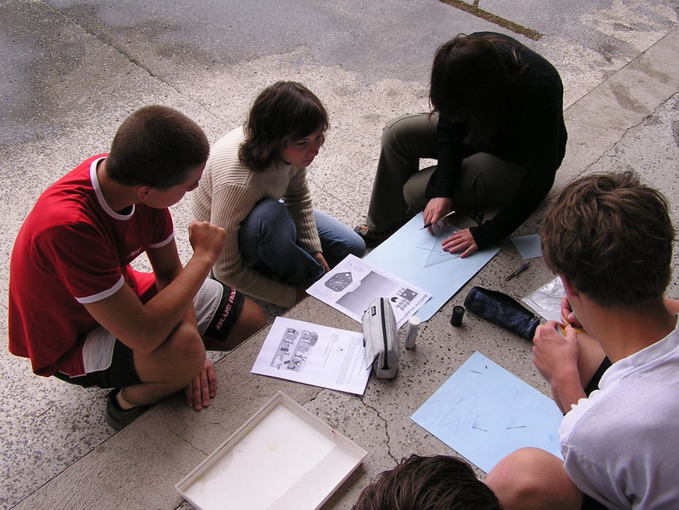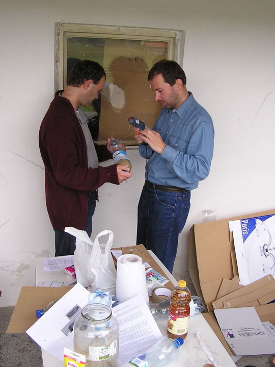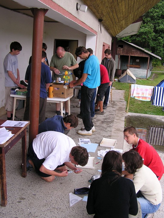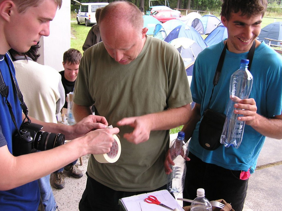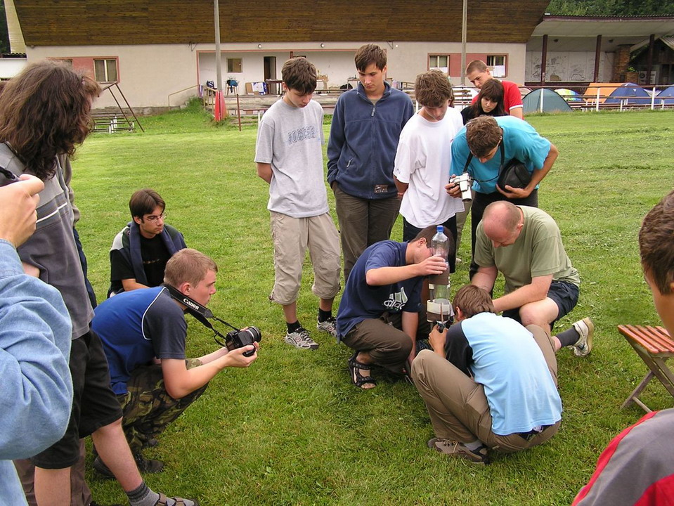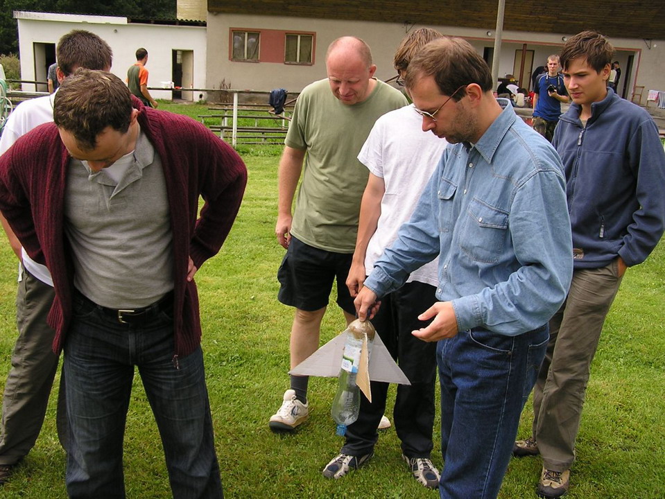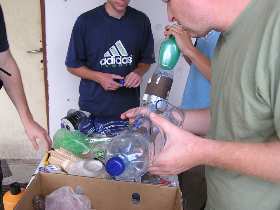 Na začátku bylo vytvořeno 5 skupin pro zvýšení soutěživosti mezi zúčastněnými a mohlo se začít. Prvním úkolem bylo sestavení rakety z předem připravených věcí, přičemž druh pohonu a typ rakety se v každé skupině odlišoval. Za několik desítek minut jsme se mohli na ploše fotbalového hřiště kochat prvními úspěšnými i neúspěšnými starty hned několika druhů létajících strojů. Pravděpodobně největší obdiv si získala raketa, jejímž pohonem byla chemická reakce mezi jedlou sodou a octem. Značných výšek dosahovaly i „vodní“ rakety. Neméně zajímavé byly také „acylpyrinové“ a „sirkové“ rakety.