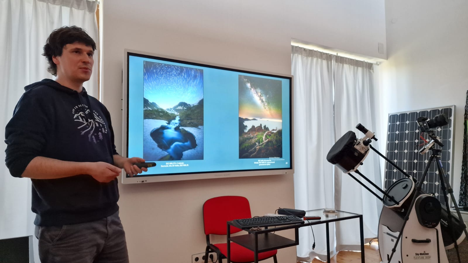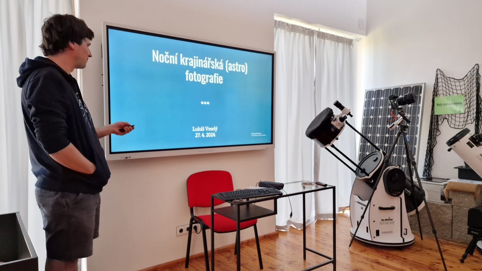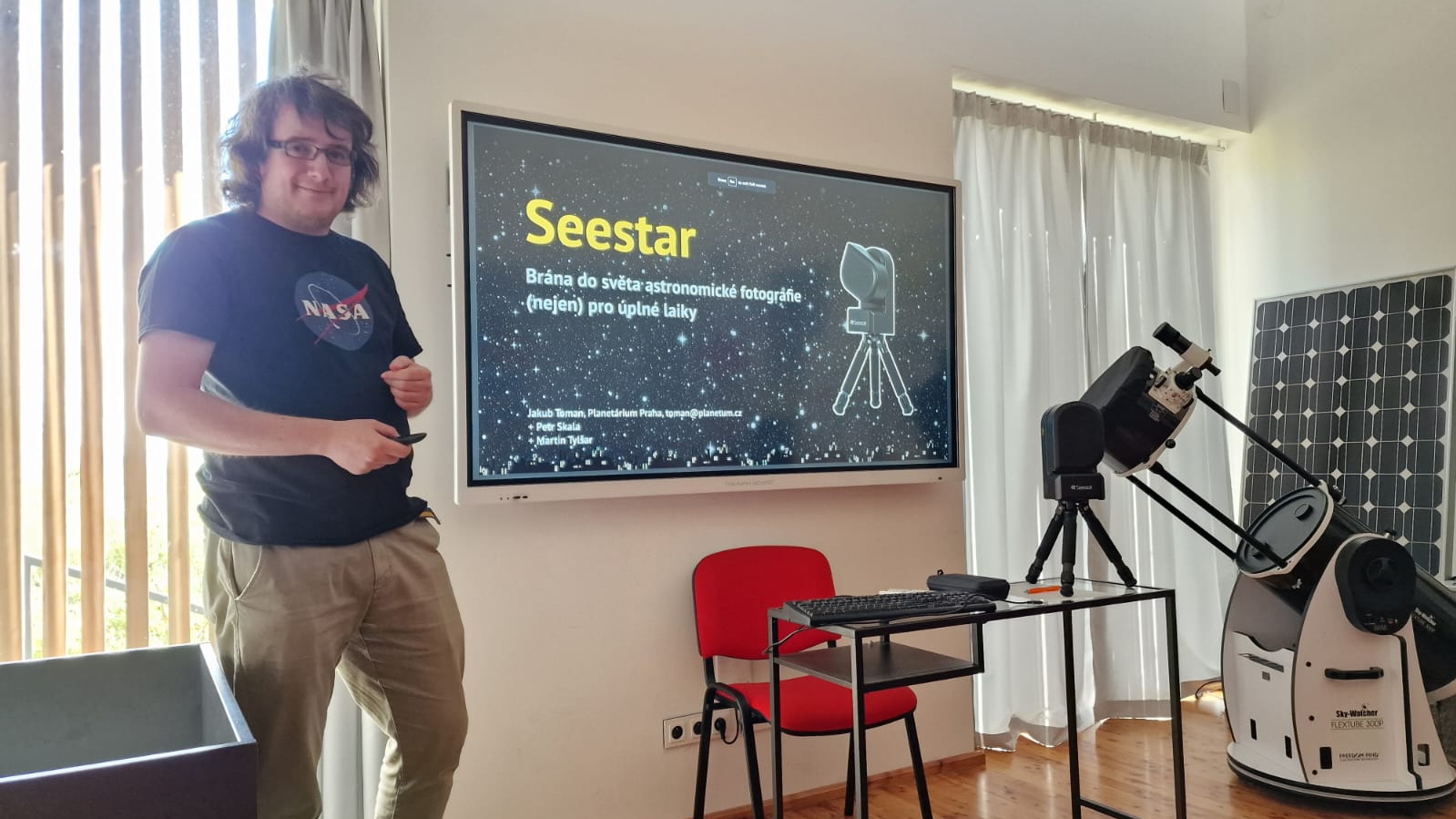 Úvodní slovo přednesl Vladimír Houda, zakladatel místního centra, který vysvětlil kontext a propojení s aktivitami Západočeské pobočky České astronomické společnosti. Následně Jakub Toman pokračoval se svým příspěvkem o astrofotografii a představil zajímavé možnosti využití “amatérských” robotických dalekohledů, včetně podrobného seznámení s technickými parametry dalekohledu SEESTAR, který se pravděpodobně stane pro řadu začínajících fotografů prvním nástrojem v jejich krůčcích k astronomické fotografii.