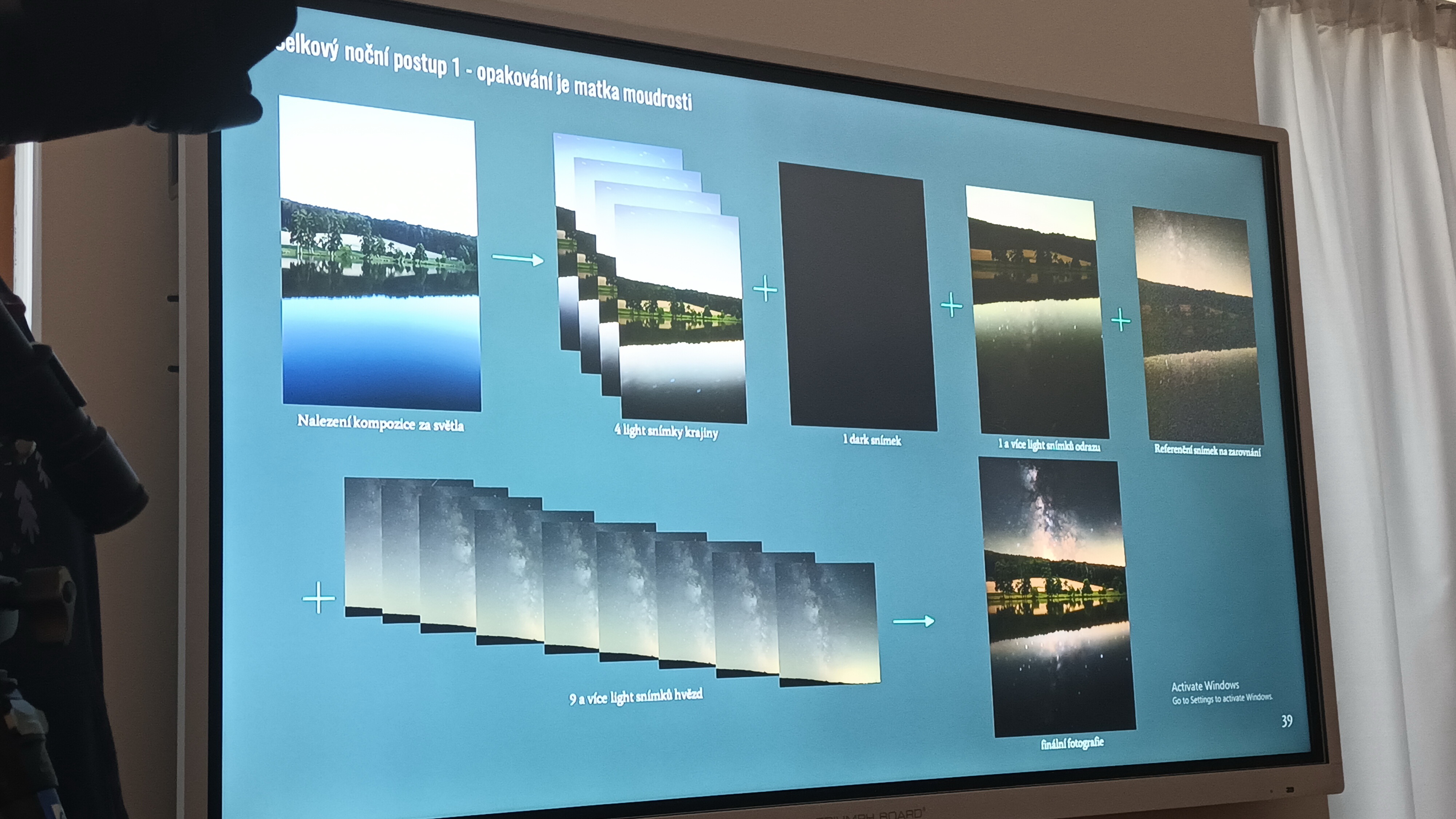 Po přestávce s občerstvením jsme se ponořili do noční krajinářské (astro)fotografie s Lukášem Veselým, který nám odhalil tajemství zachycení krás vesmíru na snímcích. Diskuse po jeho přednášce byla opravdu inspirativní a pro mnohé účastníky velmi užitečná.