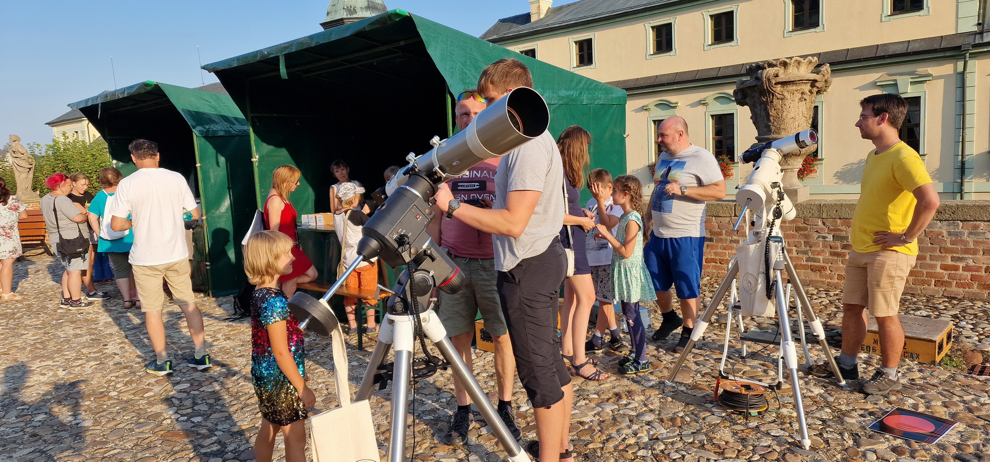 Manětín, známý jako perla českého baroka, se pro tento den stal centrem astronomických aktivit. Od 16:00 do 23:00 se návštěvníci mohli těšit na bohatý program, který zahrnoval pozorování Slunce, fyzikální a astronomické pokusy a noční pozorování oblohy. Akce se konala na náměstí a v kulturním domě, kde byly připraveny různé aktivity pro všechny věkové kategorie.