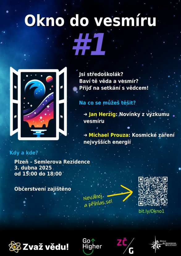 Přednáškový cyklus Okno do vesmíru je nová aktivita Západočeské pobočky ČAS vznikající díky její nově vytvořené Pracovní skupiny pro práci s mládeží ve spolupráci s organizací Zvaž vědu!, iniciativou GoHigher a Západočeskou galerií. Jejím cílem je zatraktivnění popularizace astronomie, astrofyziky a příbuzných oborů mezi středoškolskými žáky v Plzeňském kraji a okolí.