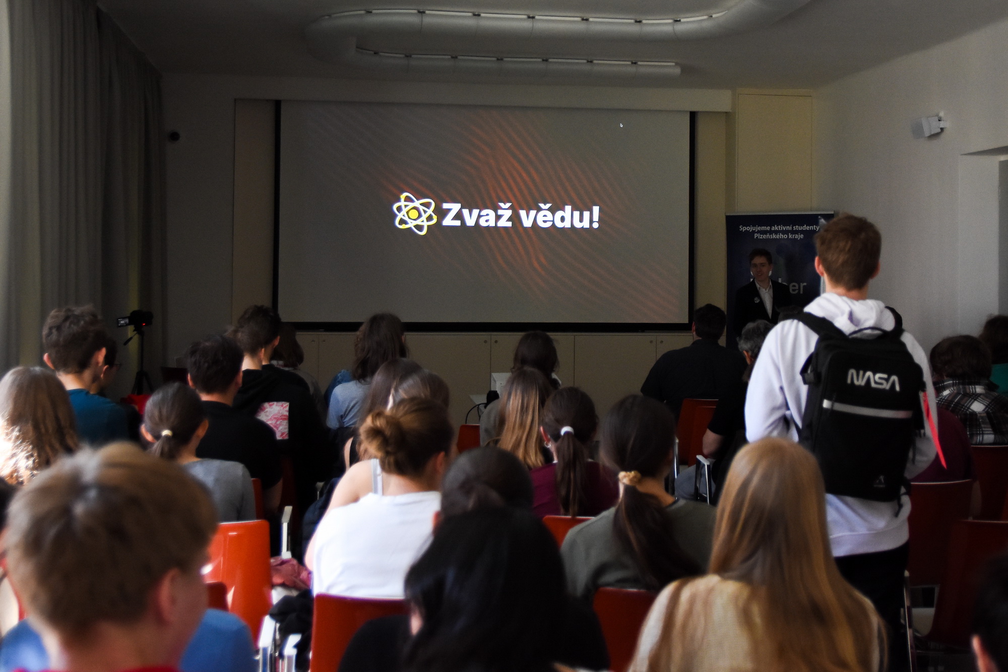 Ve čtvrtek 3. 4. 2025 jsme uspořádali první ze série našich popularizačních akcí zaměřených na téma astronomie, astrofyziky a kosmonautiky. V krásných prostorech Semlerovy rezidence se sešlo více než 50 účastníků z řad žáků středních škol a gymnázií z celého Plzeňského kraje.