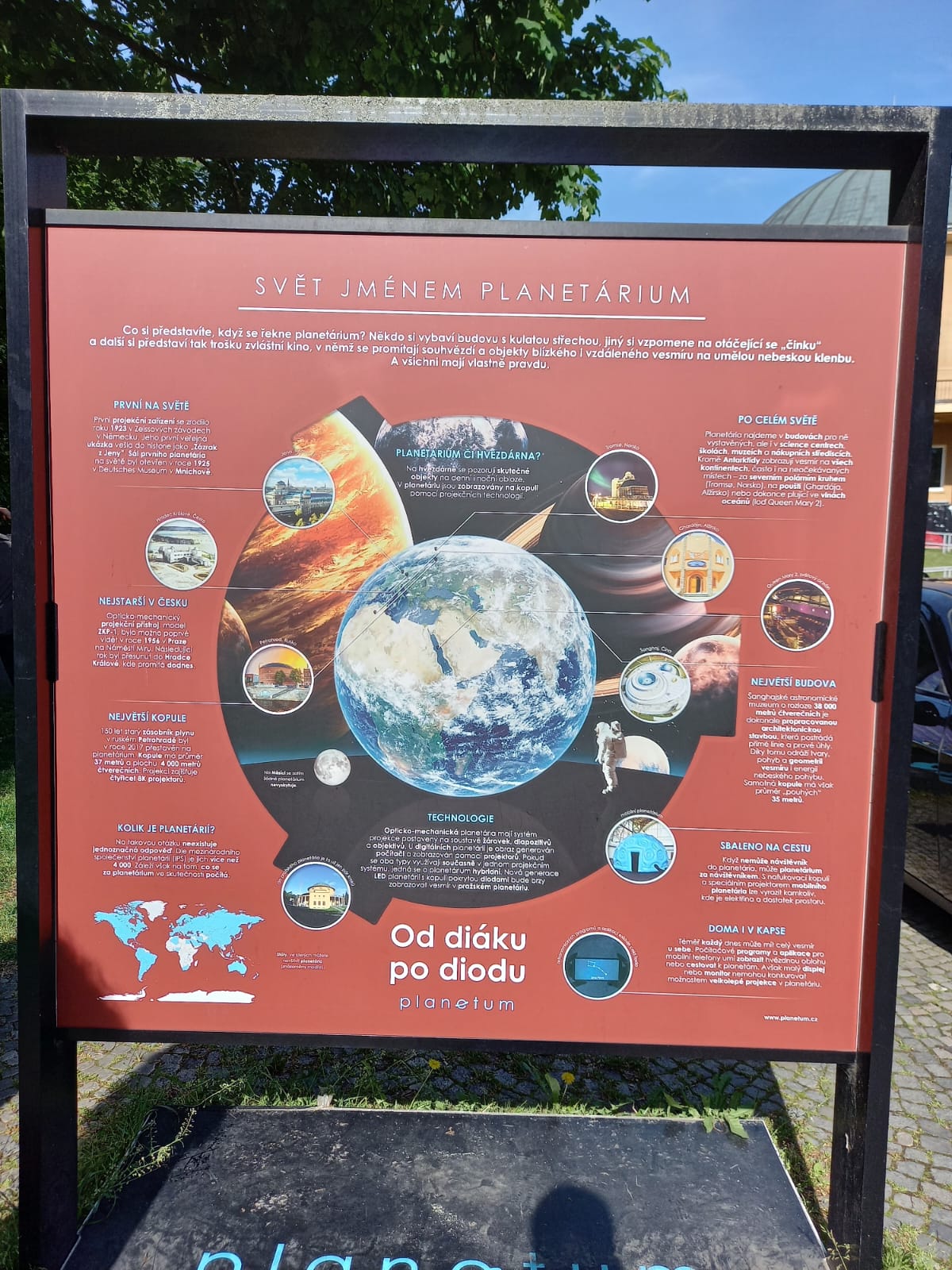 | Panelová výstava před budovou planetária | ||