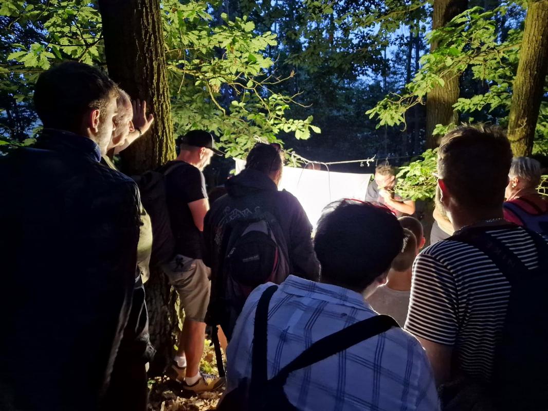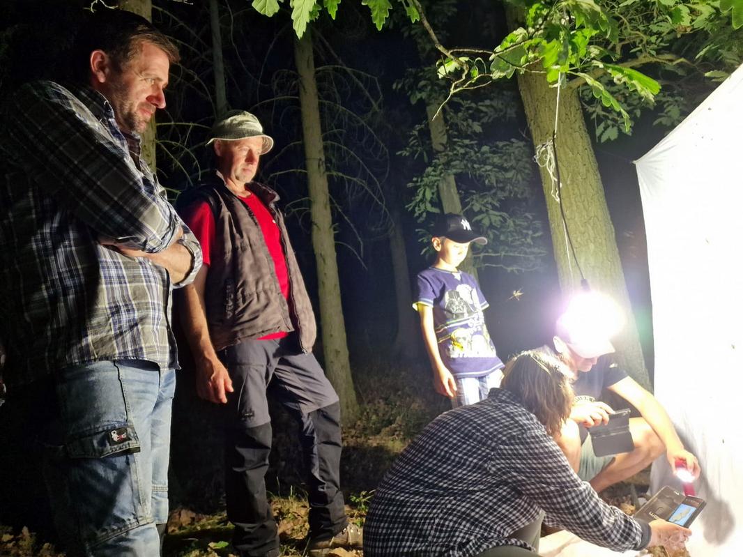 Entomolog Jan Walter ze Západočeského muzea v Plzni pomocí osvětleného plátna a světelného lapače předvedl, jak noční motýli reagují na umělé světlo. Během necelých dvou hodin se podařilo zaznamenat 32 druhů, včetně vzácných, jako je hrotnokřídlec zahradní (zapsaný v Červeném seznamu ohrožených druhů). Mezi další zajímavé úlovky patřili lišaj kyprejový, osenice vykřičníková nebo zejkovec trnkový.