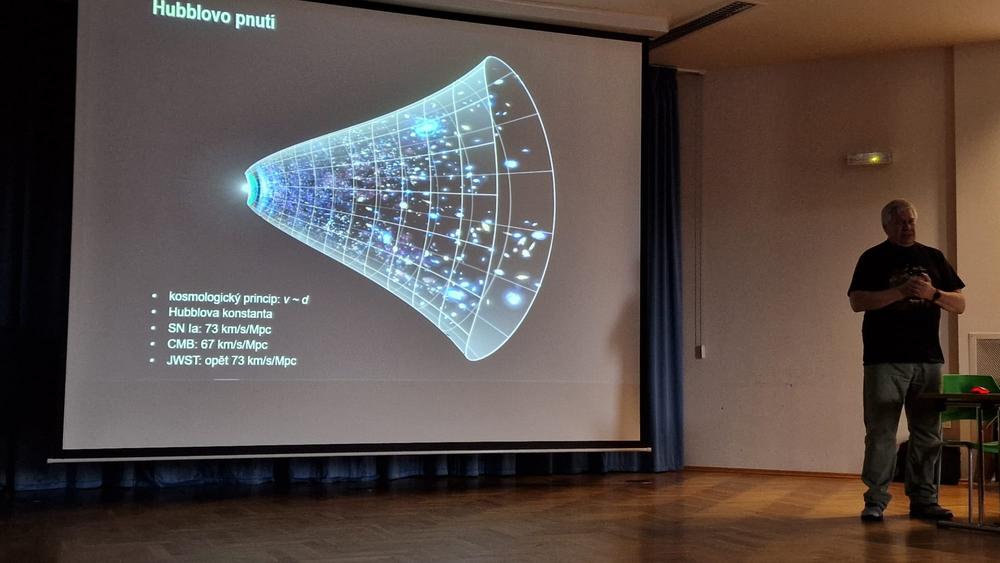 - Hubbleovo pnutí: Jde o jeden z největších současných kosmologických problémů. Zatímco měření pomocí supernov typu Ia udává hodnotu Hubbleovy konstanty 73 km/s/Mpc, data z reliktního záření (CMB) ukazují na 67 km/s/Mpc. Rozdíl přetrvává i při nejnovějších měřeních dalekohledem JWST, který potvrdil hodnotu 73 km/s/Mpc stejnou metodou jako supernovy Ia.