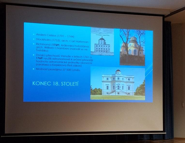 - Klíčové osobnosti české astronomie: Přednáška připomněla řadu významných postav: Vojtěcha Šafaříka (pozorování proměnných hvězd), Josefa a Jana Fričové (zakladatele ondřejovské hvězdárny), Františka Nušla (ředitele státní hvězdárny a dlouholetého předsedu ČAS), Josefa Klepeštu (zakladatele ČAS a astrofotografa) a Zdeňka Kopala (nejvýznamnějšího českého astronoma 20. století, který pro projekt Apollo sestavil topografické mapy Měsíce a jako odměnu získaný měsíční prach vysypal na hrob Julese Verna).
