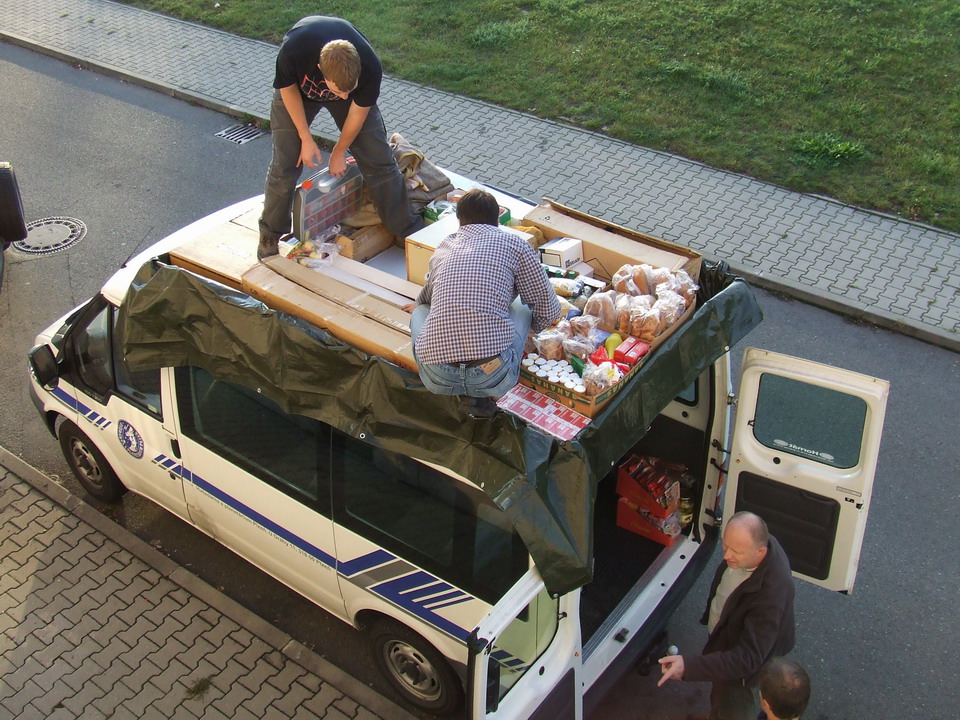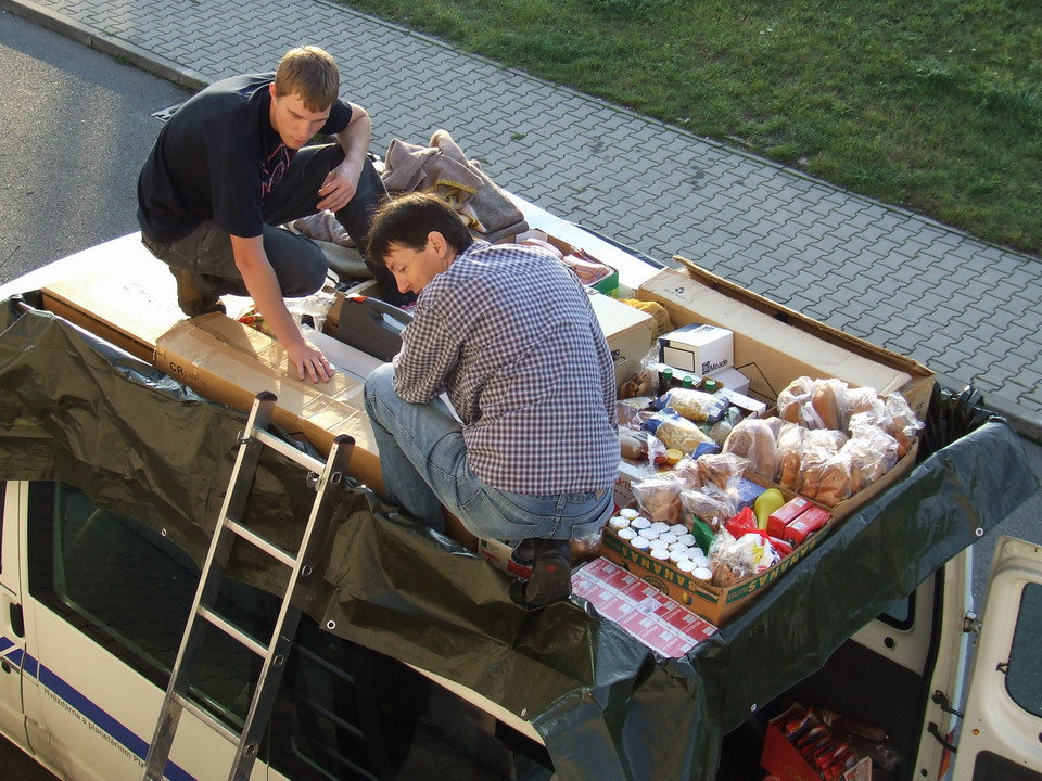 Kromě montáží, bylo nutné naložit i jídlo pro 18 lidí skoro na celý týden. |