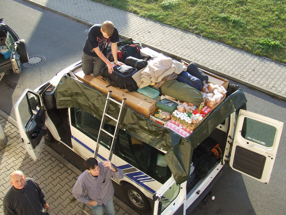Sraz jsme měli na 7 h, ale všechno naložit není nic jednoduchého. |