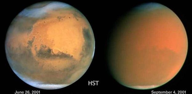 V souvislosti s Marsem se objevují i pojmy globální písečná bouře. Ta poslední Mars zastihla nedávno a velké starosti měli pracovníci NASA s vozítky Spirit a Opportunity, které se už více jak 1200 dnů pohybují v tomto nehostinném prostředí. Prach v ovzduší totiž způsobil neprůhlednost atmosféry a znatelný pokles slunečního svitu nutný pro získávání elektrické energie ze solárních panelů. Nyní již bouře naštěstí ustupuje, ale i tak nemusí být vyhráno. Prach v ovzduší se totiž usazuje na panelech.