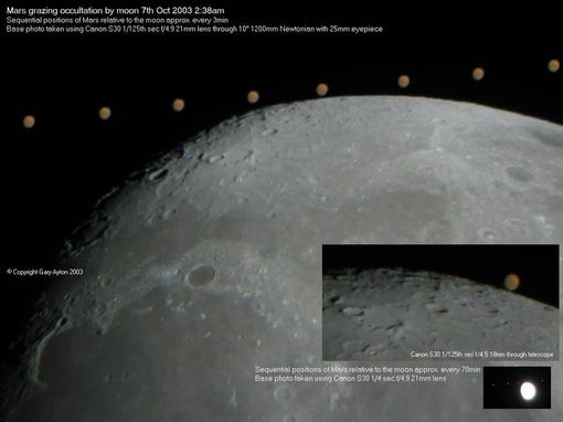 Zajímavý úkaz bychom si neměli nechat ujít na Vánoce, 24. prosince v ranních hodinách dojde k zákrytu Marsu Měsícem. Pokud bychom si vyjeli jihozápadním směrem, za hranice s Německem, mohli bychom pozorovat tečný zákryt Marsu Měsícem. Tento úkaz bychom si neměli nechat ujít, k dalšímu podobnému úkazu dojde 10. května 2008, ale bude se jednat o denní úkaz a obávám se, že najít Mars na denní obloze (hvězdná velikost +1,5 mag) bude dost složité.