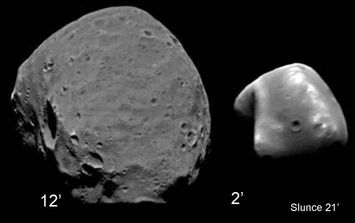 Měsíce Marsu - Phobos (vlevo) a Deimos (vpravo) |