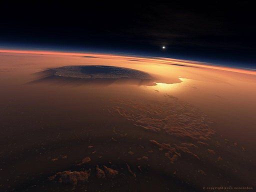 Na povrchu Marsu lze najít spoustu zajímavých útvarů, vzpomeňme nejvyšší sopku ve sluneční soustavě Olympus Mons, která se tyčí do výšky 24 km a její vrchol se prakticky nachází nad atmosférou (na vrcholu dosahuje hodnota tlaku 5 – 8 %, v porovnání s 30 % na Everestu). Na samotné zdolání vrcholu bychom nepotřebovali žádné horolezecké vybavení, neboť výstup není nikterak strmý.