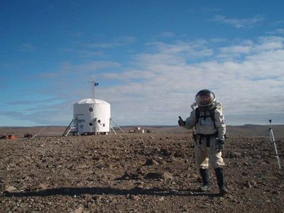 Pokud se podaří v budoucnu kolonizovat Mars nebo se tam alespoň podívat, kdybychom si výlet načasovali tak, abychom 10. listopadu 2084 byly na povrchu Marsu, naskytnul by se nám pohled na přechod Země a Měsíce přes sluneční disk (ze Země lze sledovat pouze přechod Venuše a Merkuru). Od roku 2000 se pokouší společnost Mars Society simulovat možnosti práce ne povrchu Marsu. Úmyslně bylo vybráno místo na Zemi, které svými povětrnostními podmínkami odpovídá podmínkám na Marsu.