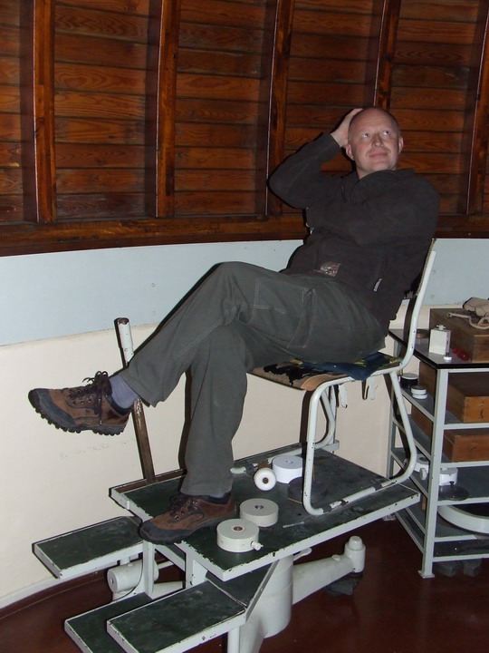 Lumír se nemohl nabažit teleskopické stoličky u dalekohledu. |