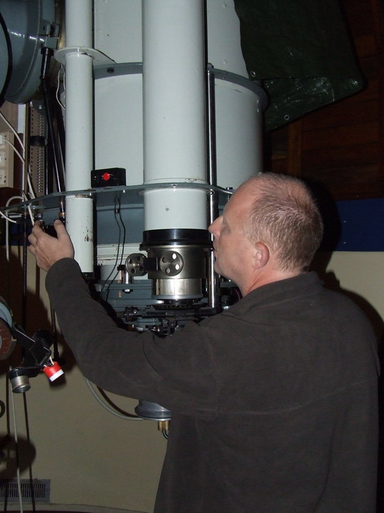 Ondra při zakládání fotografických desek do Schmidta o primárním zrcadle 50 cm. |