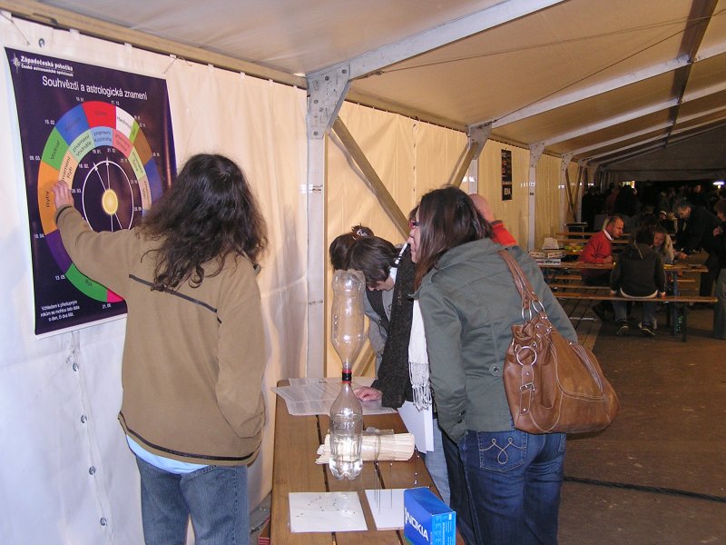 Ukazovali jsem také osvědčené pokusy a experimenty jako např.: kouzelná krabička, model radarového snímání povrchu planet nebo domácí, ochočené a zcela neškodné vodní tornádo. Velké oblibě se těšila ukázka propíchnutí nafukovacího balónku špejlí, bez toho aby nafouklý balónek prasknul. Odvážný návštěvník si to mohl vyzkoušet osobně. Balónky šli na dračku a tak asi po třech hodinách, nebylo již co propichovat.