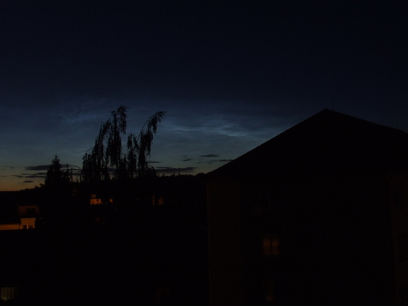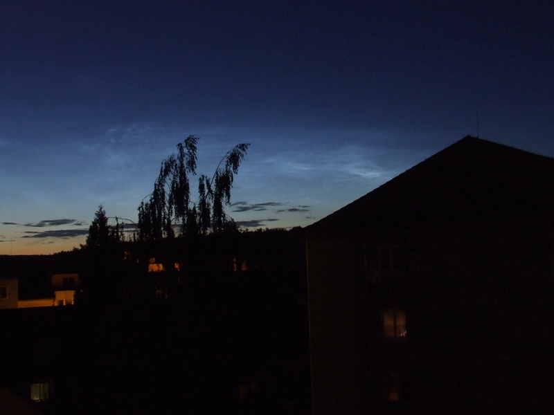 V dnešních ranních hodinách přišla první testovací sms zpráva od Rosti a Oldřišky z Mnichova. Bylo to v době, kdy jsme mohli pozorovat nad severozápadním obzorem krásná noční svítící oblaka. Tak trochu jsem si nadával, protože jsem zmiňované dvojici po vydatném přemlouvání zapůjčil svůj jediný pořádný stativ a následující fotografie jsem musel pořizovat vykloněn z okna bez stativu. Byla to opravdu velká škoda, protože oblaka byla nádherná.