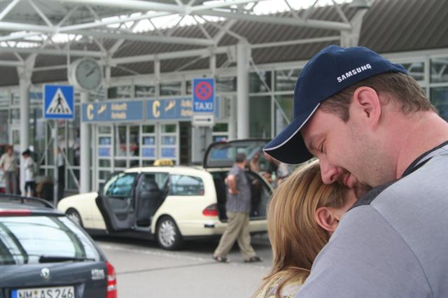 Kde pak máš tu letenku? Poslední sbohem a hurá k terminálu. |