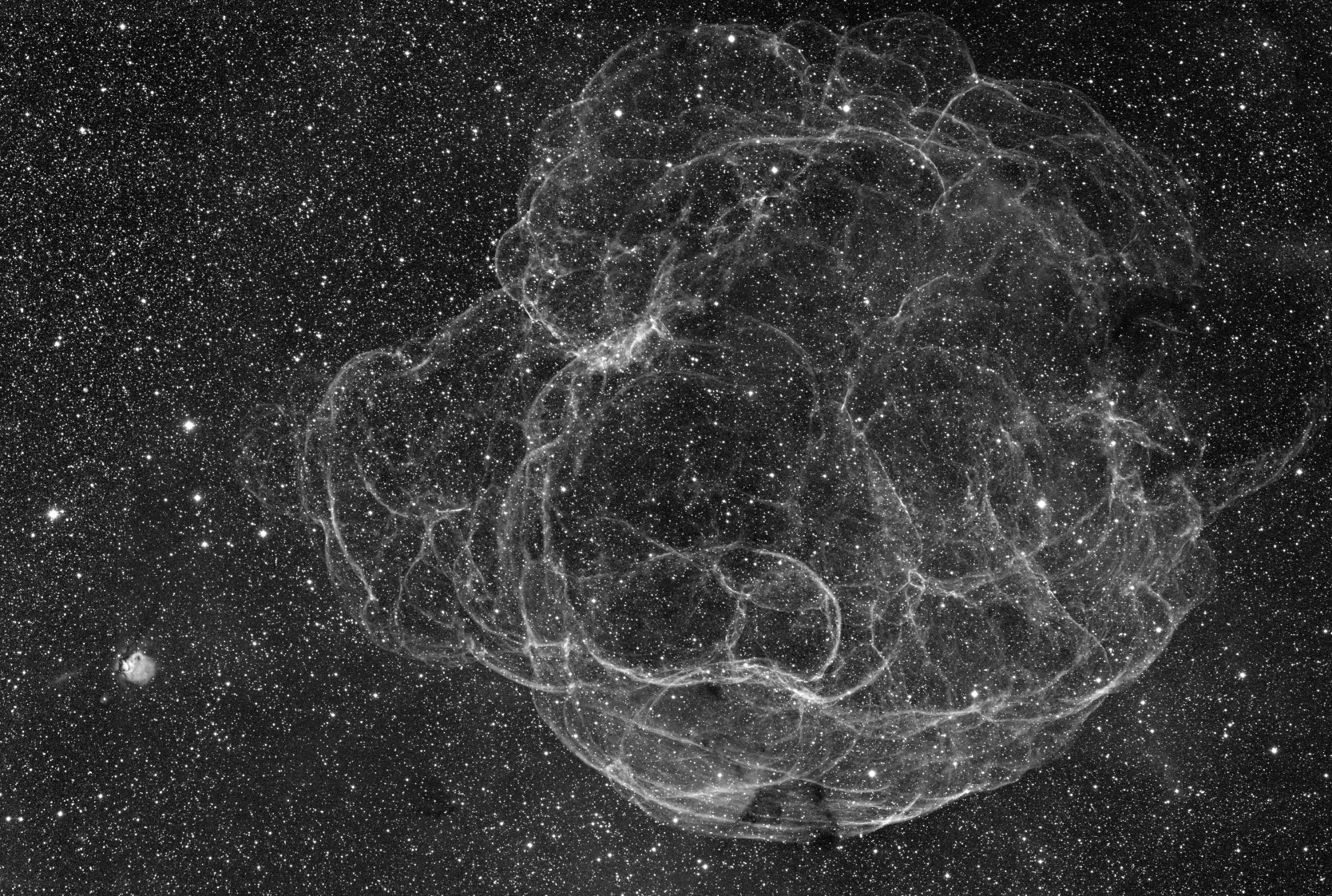 Na hranicích souhvězdí Vozky a Býka nalezneme spletitou strukturu filamentů, které tvoří zbytek po výbuchu supernovy v Mléčné dráze. Tento objekt pod katalogovým číslem Simeis 147 byl objeven v roce 1952 na krymské Astrophysical Observatory s využitím 25´´ dalekohledu Schmidt-Cassegrain. Mlhovina je od nás vzdálená přibližně 300 světelných let a na obloze zaujímá plochu téměř 3 stupňů. Odhadujeme, že k samotnému výbuchu supernovy pak došlo před 40.000. Pozůstatkem hvězdné exploze je rychle rotující neutronová hvězda známé jako pulsar PSR J0538 + 2817, který je v jádru mlhoviny a emituje silný rádiový signál.