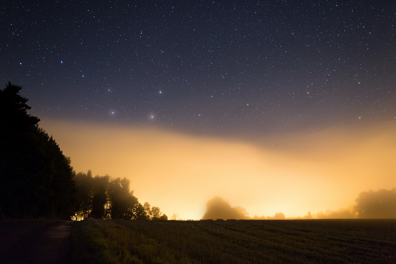 | Popis poroty: | Hvězdná obloha nad Hvězdárnou v Úpici se postupně zahaluje do mlhy a ta odhaluje nadbytek rozptýleného světla z veřejného osvětlení. Velký vůz už za několik minut uvázne v oranžové přesile světla.