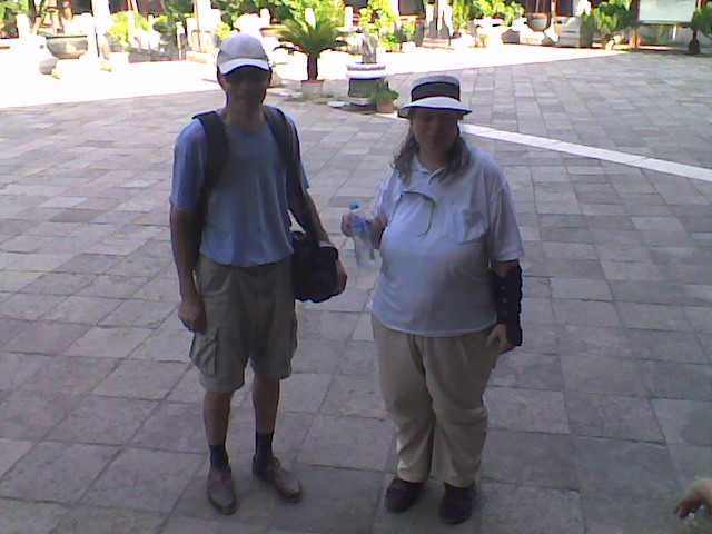 Dnes jsme navsivili Pagodu male divoke husy (1.foto).Neodolali jsme a vysplhali na vyhlidku ve 13.patre.S pribyvajicimi schody teplota prudce vzrustala a na terase se nebylo kam ukryt pred Sluncem.Ochladit jsme se zasli do pobocky cinske komercni banky.Pozadavkem na vymenu penez,obzvlaste dolaru,jsme toto zarizeni s 10 prepazkami uvedli na cca 45 minut do naprosteho chaosu.Ochrance se viditelne ulevilo,kdyz jsme vypadli.Dale jsme shledli zvonovou a bubnovou vez.Ty byly vyuzivany v pripade pozaru nebo napadeni mesta nepritelem.Pokud chcete potkat v Cine evropana,Cecha a ke vsemu z Plzne,je nejlepsi zajit do muslimske mesity.Nam se to podarilo hned dvojnasobne.Pobliz minaretu,ktery vubec nevypada jako minaret (foto 2) jsme potkali manzele Smidovy (foto 3,pokud by nekdo nepoznal).Jsou zde se skupinou z Prahy a zatmeni temer nevideli.Ted sedime u vecere v restauraci v muslimske ctvrti.Jdou s dobou,pro zapadni turisty maji pivo. Neznamy autor mms je Tonda Komora,ja mel vybity mob il.