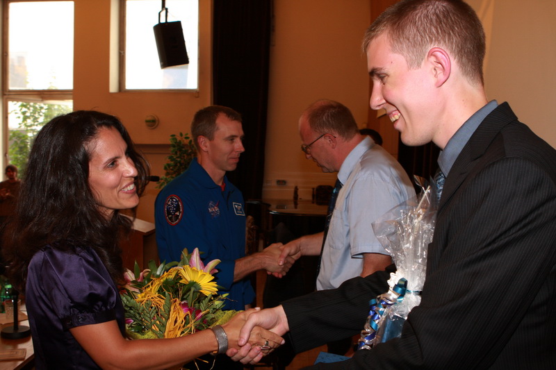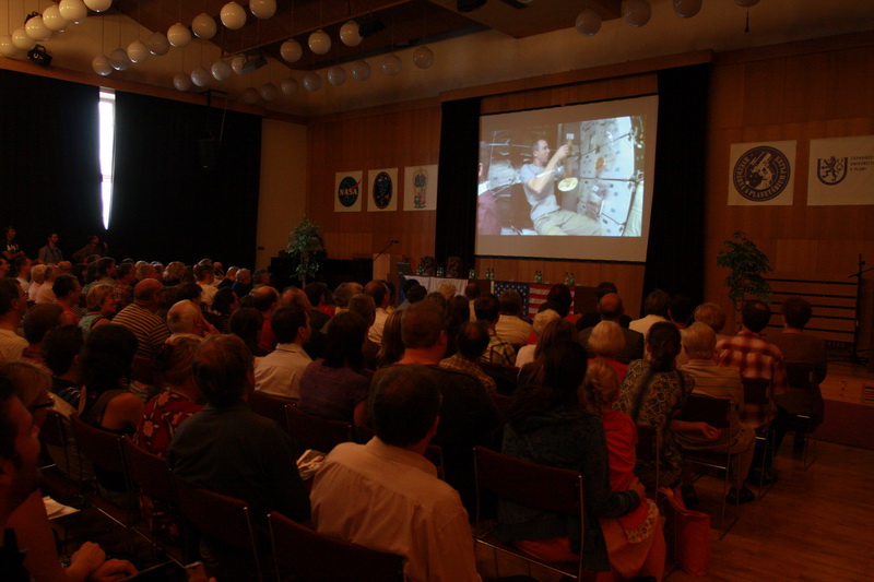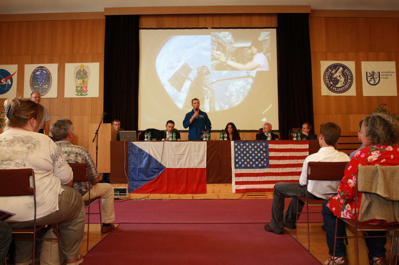 Pro veřejnost byla v prostorech auly ZČU v Jungmannově ulici připravena beseda spojená s autogramiádou. Besedy se účastnil astronaut s celou svojí rodinou. Přítomný byl mimo jiné i rektor Západočeské univerzity doc. Ing. Josef Průša, CSc. a ředitel H+P Plzeň Lumír Honzík. Po krátkém přivítání mohli přítomní shlédnout více jak dvacetiminutový film z mise letu raketoplánu Atlantis STS -125, po kterém následovala krátká beseda, kde Andrew Feustel odpovídal na dotazy přítomných. Po skončení tohoto programu proběhla autogramiáda se všemi členy rodiny.