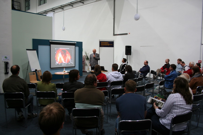Prvním přednášejícím byl Rostislav Medlín s příspěvkem o historii dalekohledu a jeho využití v astronomii. Po krátké přestávce, která byla vyplněná diskuzí s vývojáři ze Škodovky, se ujal slova ředitel hvězdárny a planetária Lumír Honzík, který popsal historii projektu Apollo a jeho úspěch prvního přistání lidské posádky na Měsíci. Posledním přednášejícím byl Miroslav Randa, který velmi poutavou formou připomněl, jak významnou roli sehrál dalekohled v pozorování Slunce a slunečních skvrn.