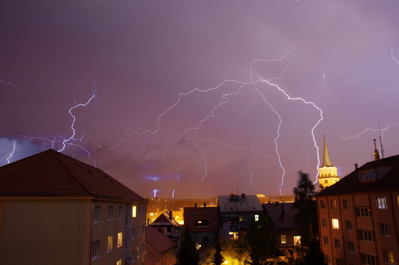 V posledních týdnech zasáhly západní Čechy poměrně vydatné bouřky, a tak se po několika letech naskytla možnost vyfotografovat pěkné blesky, které se našemu městu vyhýbaly již několik let.