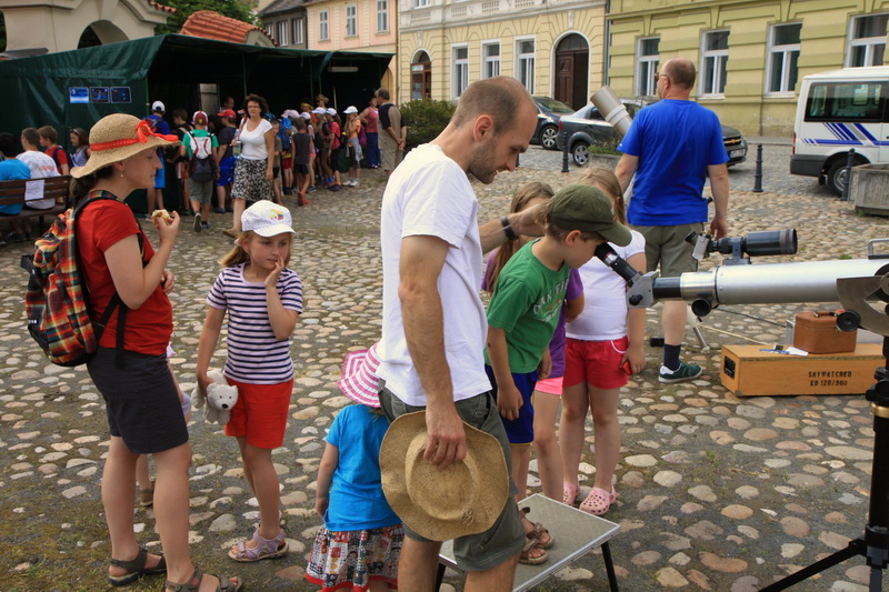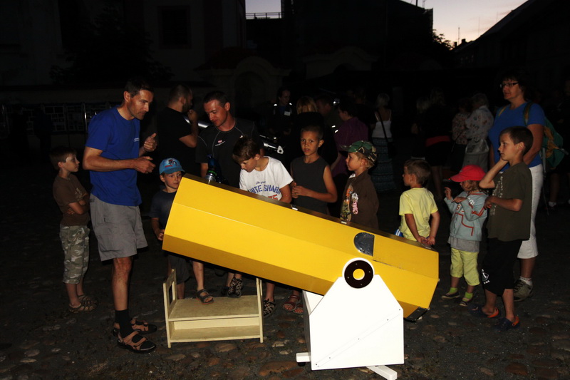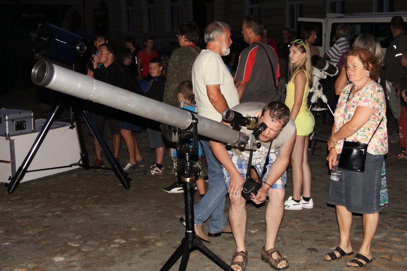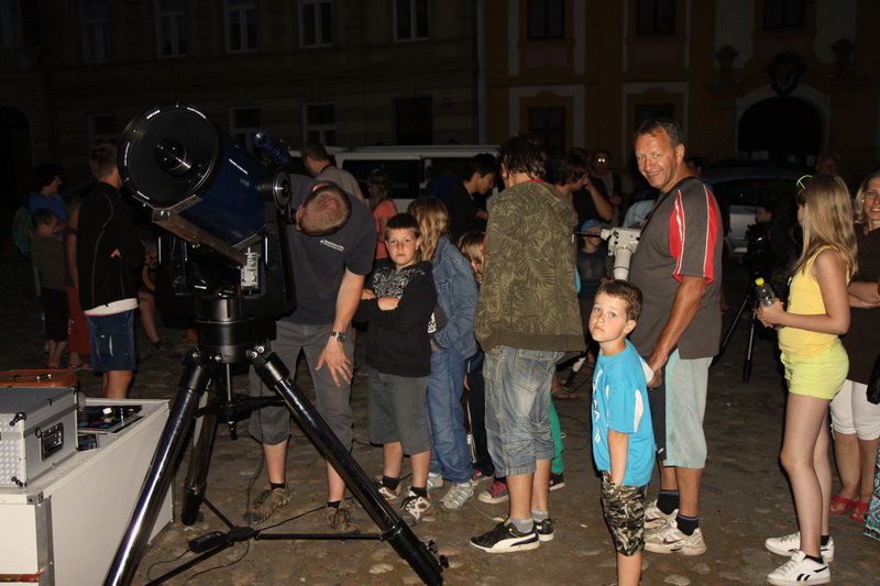 Závěr našeho programu patřil pozorování noční oblohy z místního náměstí dovezenou astronomickou technikou, a to také díky tomu, že představitelé města dokázali zajistit zhasnutí náměstí, které velmi napomohlo ke zlepšení pozorovacích podmínek. Na náměstí se tak nakonec sešlo necelých tři sta nadšených astronomických pozorovatelů.