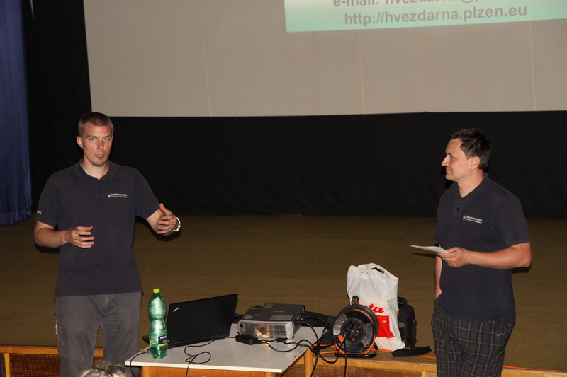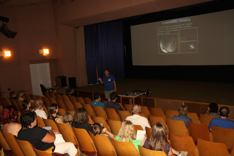 Součástí našeho programu byly i astronomické přednášky, které probíhaly v místním kulturním centru. První přednášku s názvem „Jak daleko vidíme do vesmíru“ prezentoval ředitel Hvězdárny a planetária Plzeň Lumír Honzík. Na jeho povídání pak navázal Ondřej Trnka s přednáškou „Projekt Apollo – cesta na Měsíc či podvod století?“ Program astronomických přednášek byl zpestřený soutěží o astronomickou literaturu.