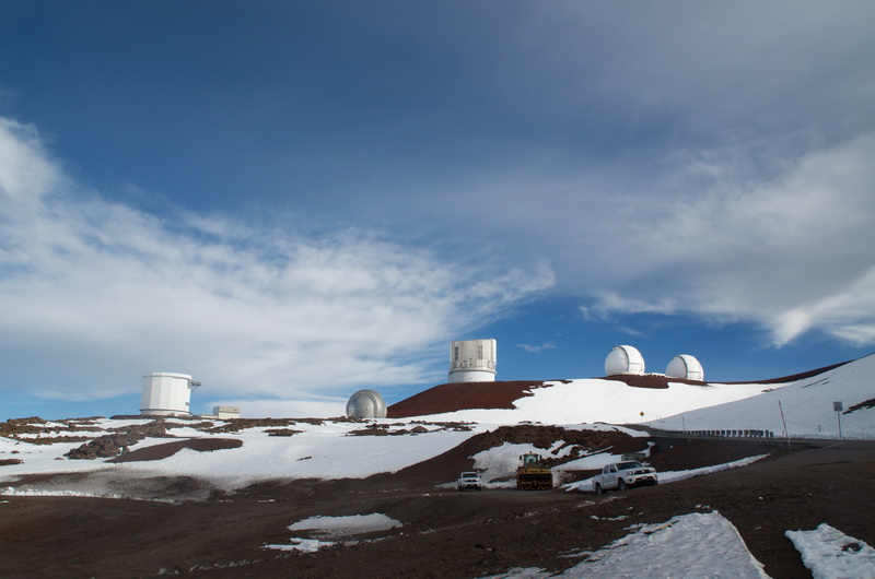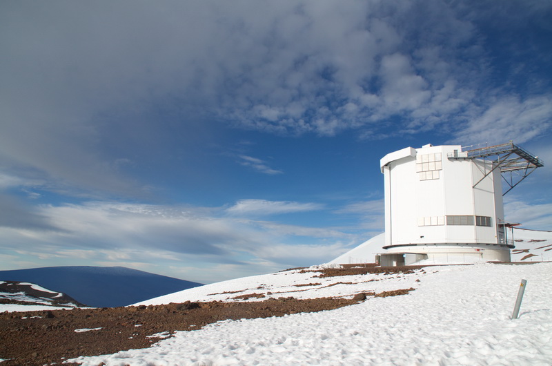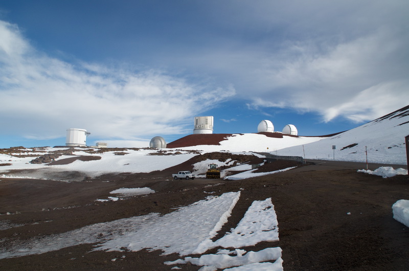 Náš kolega Michal Hron již několik měsíců studuje na Havajských ostrovech, kde navštívil několik astronomických observatoří. Havajské ostrovy tvoří souostroví s více než devadesáti sopečnými a korálovými ostrovy v Tichém oceánu. Největším ostrovem tohoto souostroví je ostrov Havej, kde najdeme nejvyšší štítovou sopku světa Mauna Kea (Bílá hora), pochopitelně neaktivní. Její vrchol má nadmořskou výšku 4205m. Díky vynikajícím atmosférickým podmínkám byl na hoře Mauna Kea vybudován komplex několika astronomických observatoří označovaných jako Mauna Kea Observatories (MKO), který v současné době zpravuje Havajská univerzita. Na internetu se můžete dočíst, že v této oblasti, mají cca 300 jasných nocí v roce bez výrazného vlivu světelného znečištění a podprůměrné vlhkosti vzduchu. Výhodou je i zeměpisná šířka, díky které mohou astronomové pozorovat objekty jak na severní, tak i jižní hvězdné obloze.