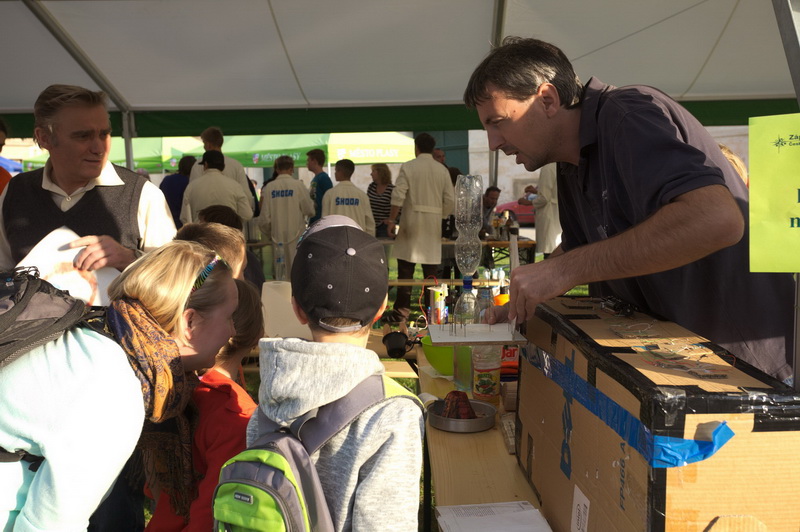 Průběh akce trochu poznamenalo počasí, které neumožňovalo plnohodnotné využití dovezené astronomické techniky, ale i tak se návštěvníci mohli seznámit s velkou řadou pokusů a experimentů z fyziky, chemie a dalších přírodních věd. Přímo před Centrem stavitelského dědictví desítky studentů základních škol a gymnázia vytvořily nádhernou atmosféru. Ani tentokrát nechyběli se svojí „astronomickou kuchařkou“ členové Západočeské pobočky České astronomické společnosti, kteří vydrželi až do samotného závěru akce. A samozřejmě nemůžeme opomenout ani zástupce oddělení fyziky katedry matematiky, fyziky a technické výchovy Fakulty pedagogické Západočeské univerzity v Plzni a pracovníky katedry fyziky Fakulty aplikovaných věd Západočeské univerzity v Plzni. Poprvé s námi také vyrazili i zástupci katedry chemie Fakulty pedagogické, kteří si pro zvídavé návštěvníky připravili řadu světelných efektů, jak dokládají přiložené fotografie.
