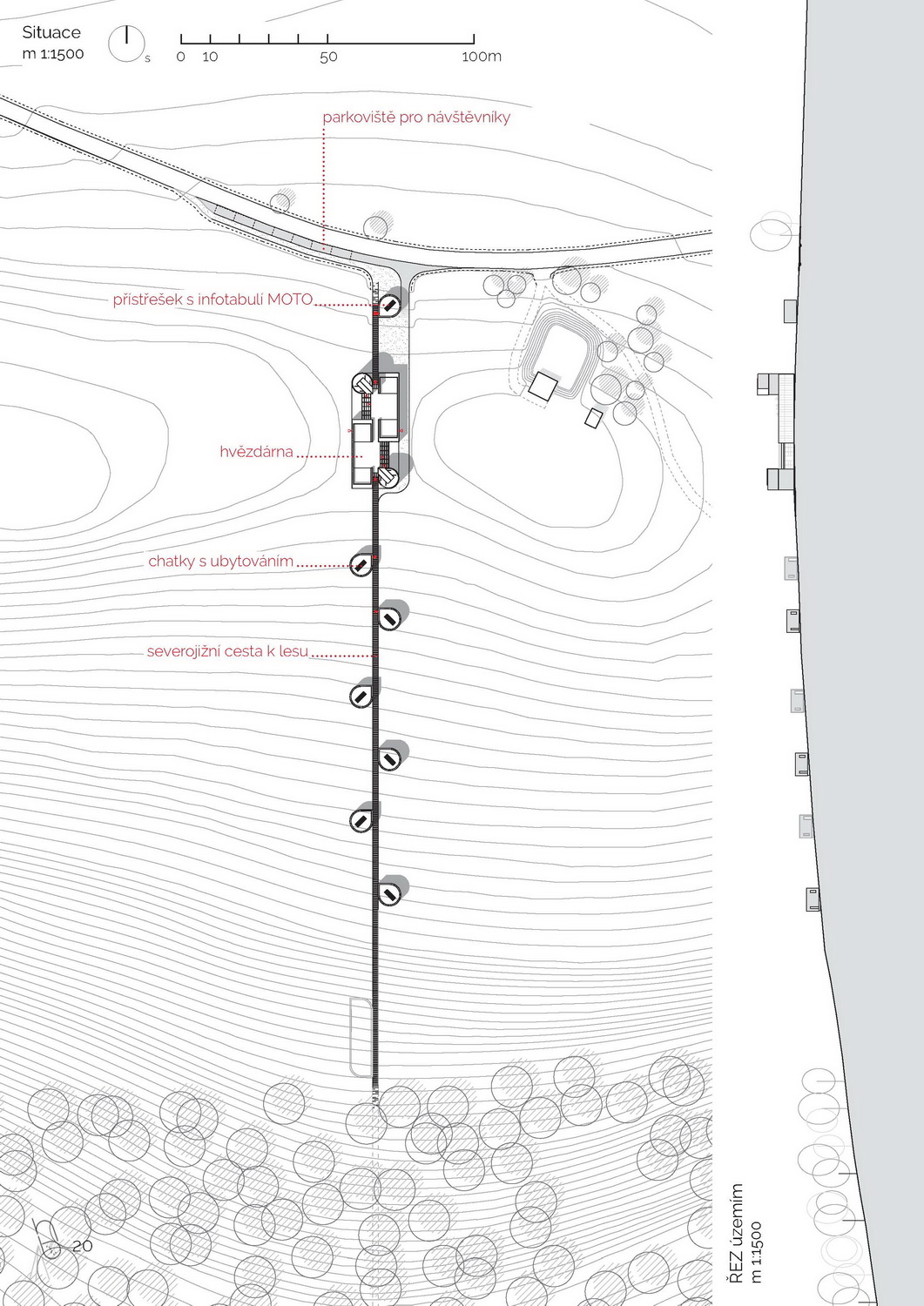 Nedávno vyhlášená Manětínská oblast tmavé oblohy (v pořadí již třetí podobný počin na území ČR) inspirovala téma této diplomové práce - hvězdárny s programem pro veřejnost v oblasti tmavé oblohy. Cílem práce je na vytipované lokalitě navrhnout hvězdárnu s ubytováním pro návštěvníky a vhodnými prostory pro popularizaci astrono¬mie, meteorologie a ochrany životního prostředí obecně.