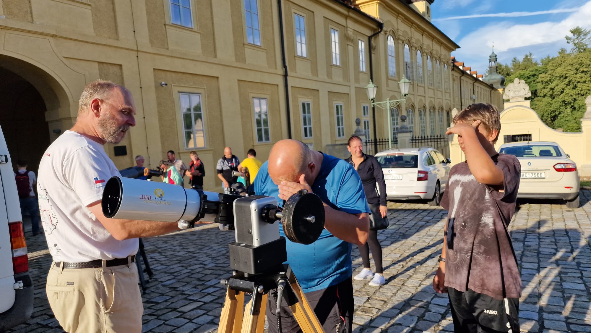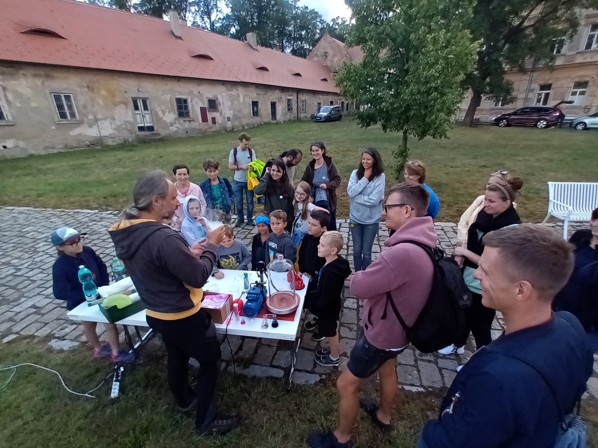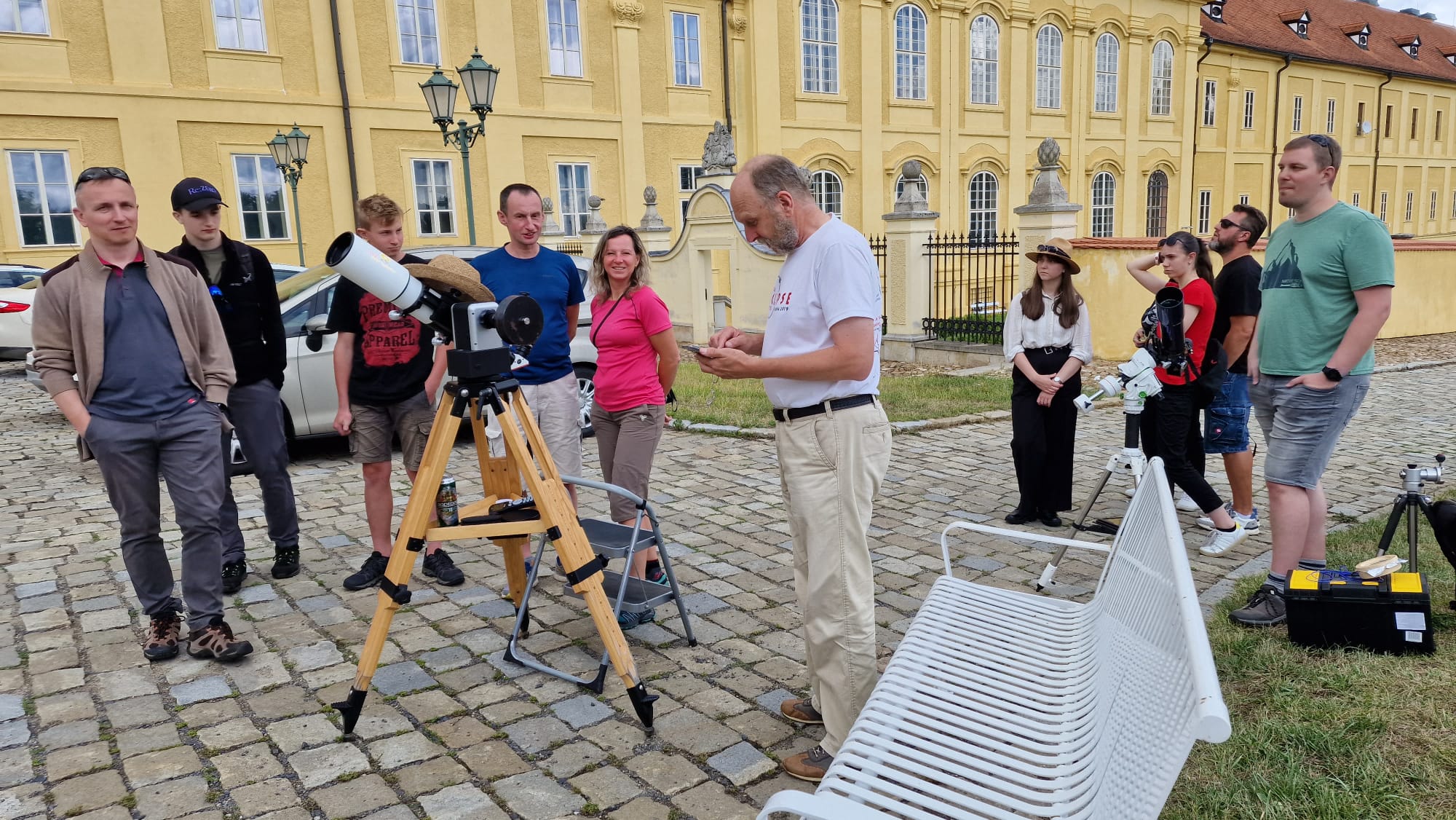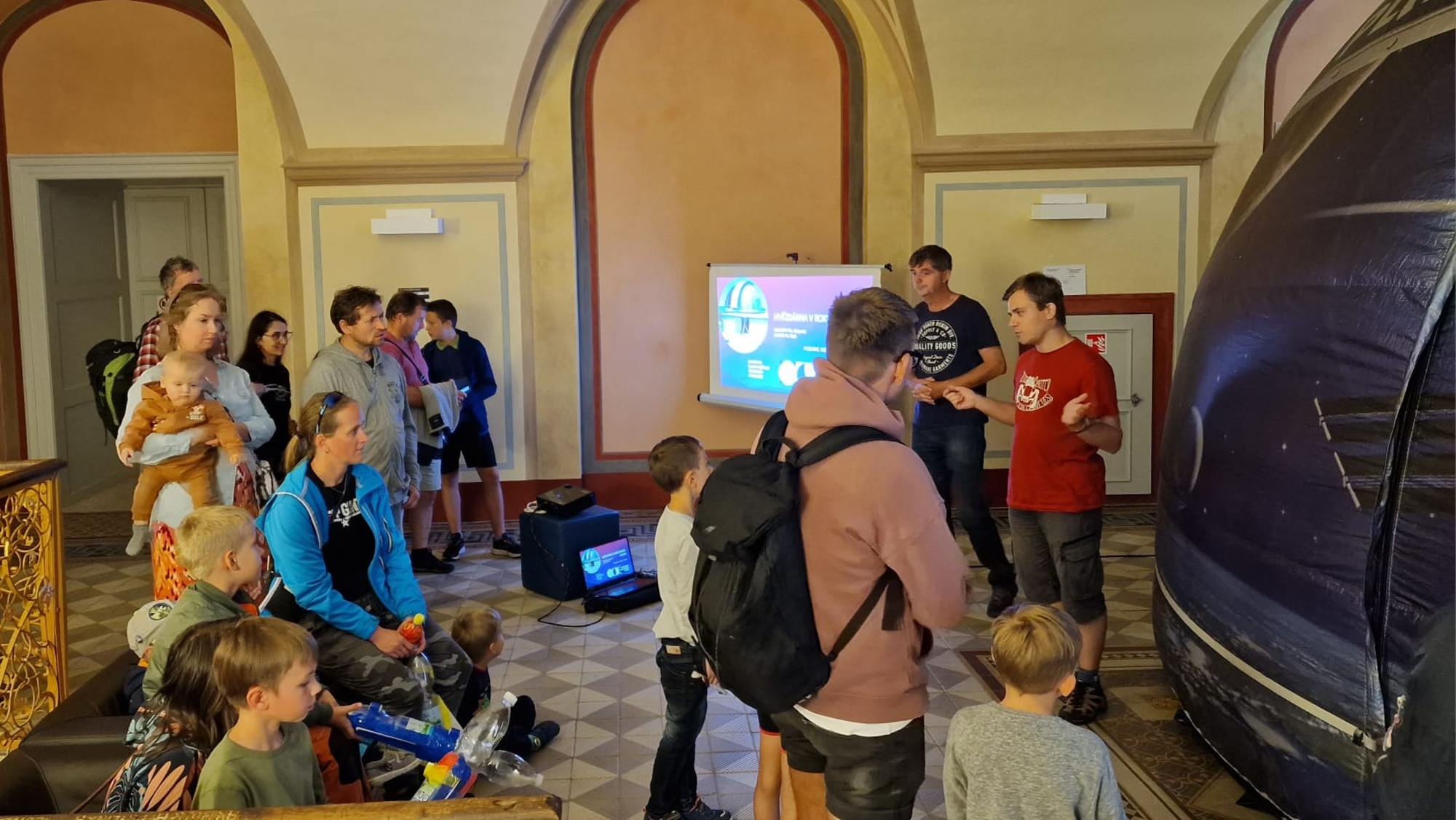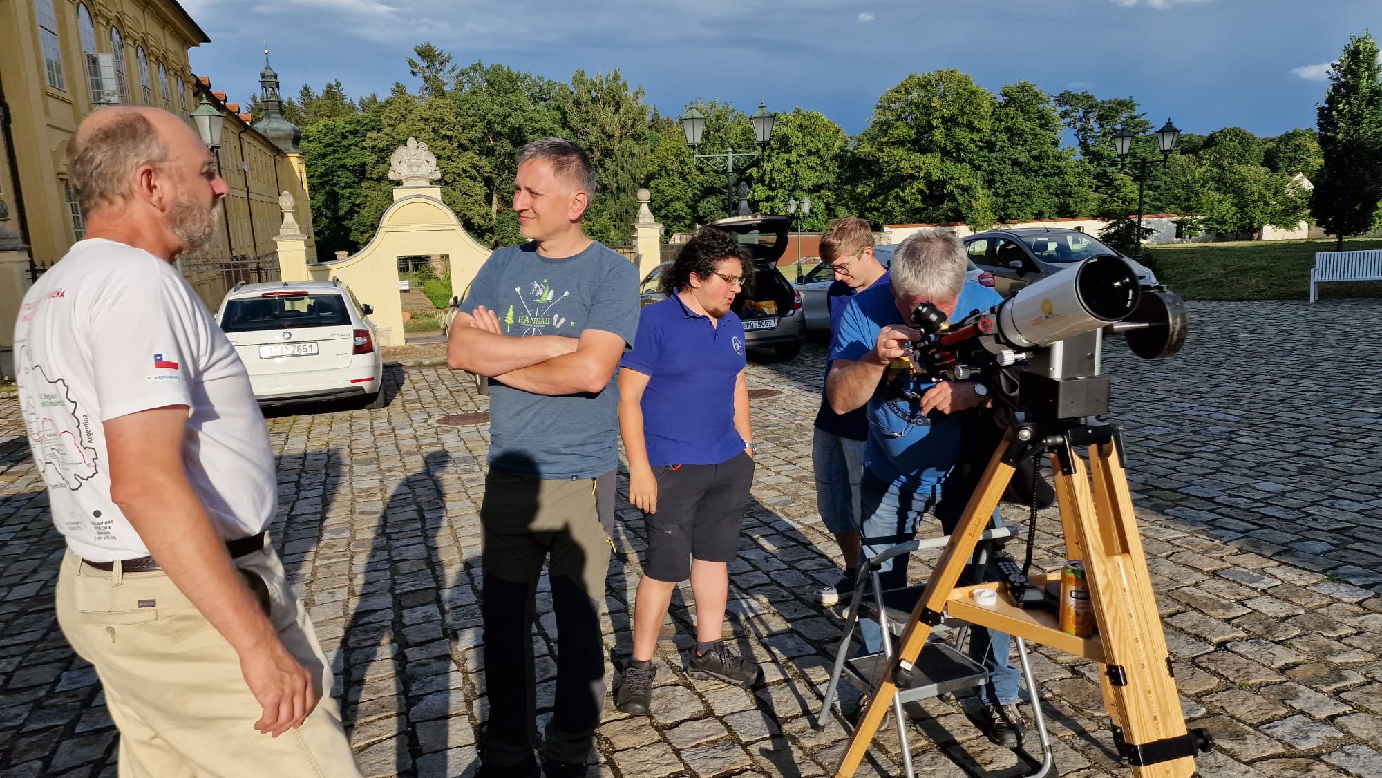 V sobotu 29. 7. 2023 jsme ve spolupráci s Hvězdárnou v Rokycanech a Plzni, Fakultou pedagogickou Západočeské univerzity v Plzni, Hroznatovou akademií a firmou SUPRA Praha s.r.o. uspořádali v areálu kláštera Teplá u Mariánských Lázní astronomické pozorování doplněné o fyzikální pokusy, vypouštění raket na vodní pohon nebo možnosti návštěvy digitálního planetária. Do krásného prostředí kláštera v Teplé u Mariánských Lázní se tak opět vrátila astronomie a fyzika, která zde vzkvétala po několik staletí. Téměř dvě stovky návštěvníků si mohly vychutnat krásy vesmíru dovezenou astronomickou technikou a zábavnou formou se seznámit s řadu zajímavých fyzikálních pokusů, které si mohli návštěvníci vyzkoušet na vlastní kůži, jak dokreslují přiložené fotografie.